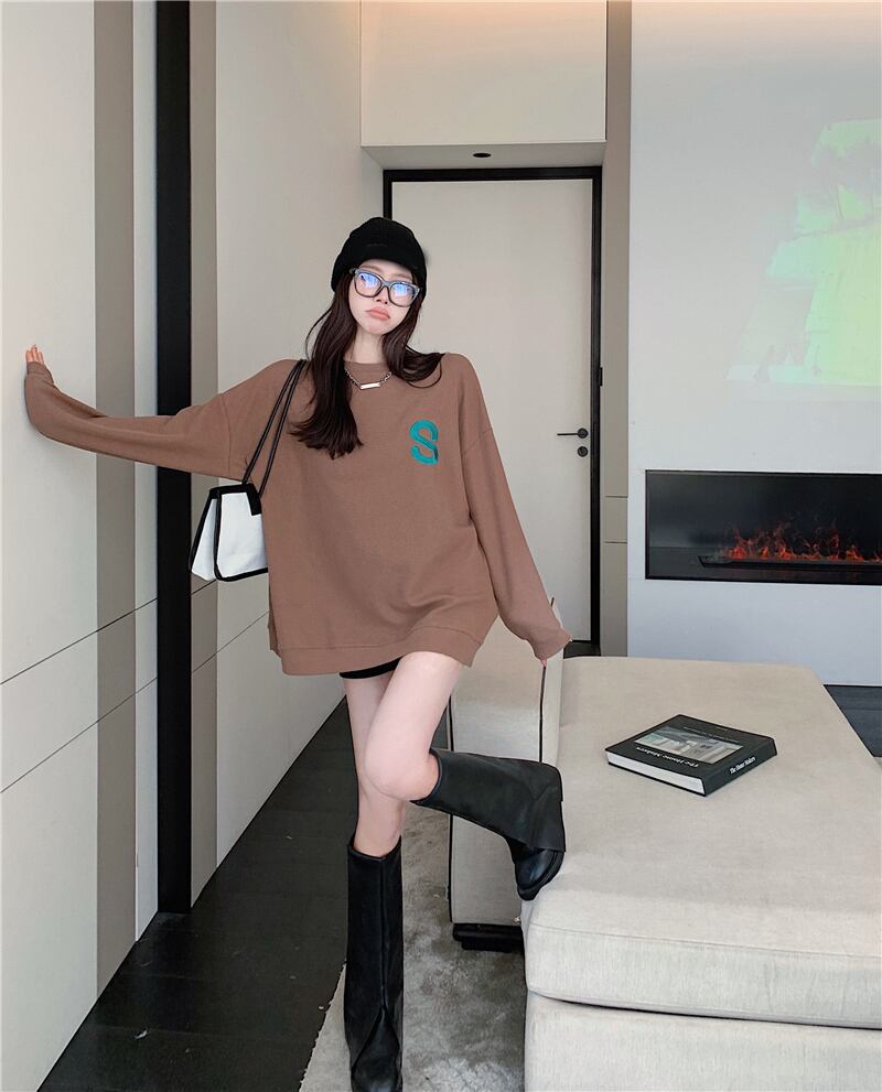 オータムルーズ刺繍プルオーバー セーター レディース ロング コットン 秋物 ナナファッション90644270493