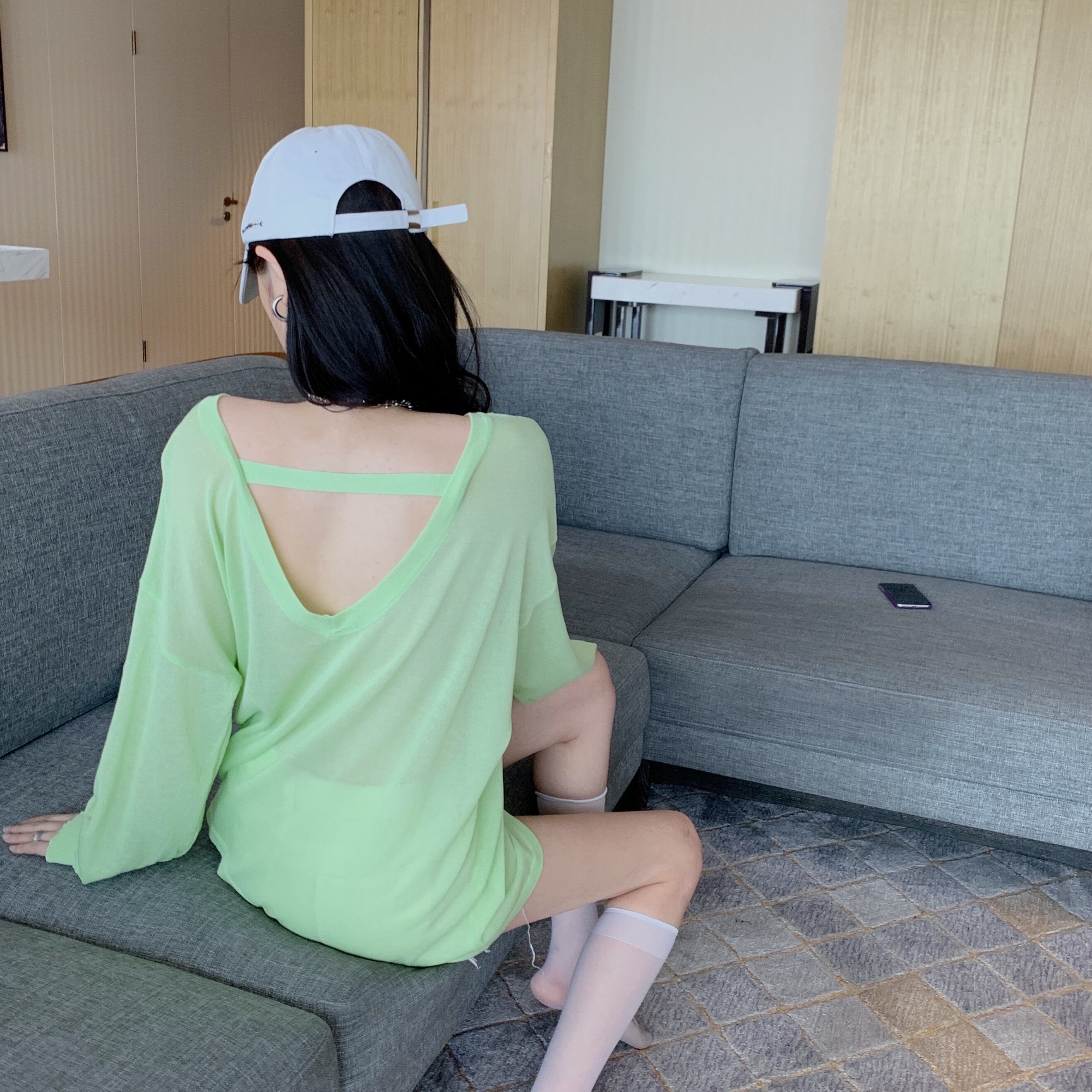グリーンTシャツ サマー薄手ルーズニットトップス ピンク 夏物 シルク ナナファッション38377573726