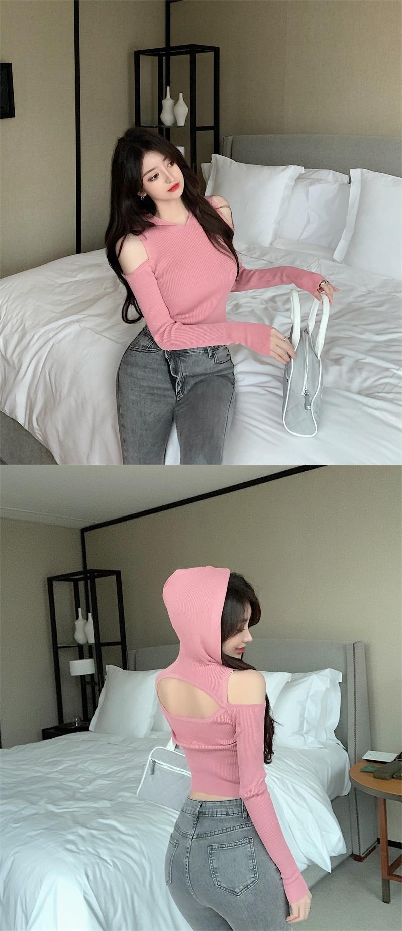 オータムスタイルスリムフィットフードウールセーター レディース ロング 秋物 オフショルダー ナナファッション53150840997