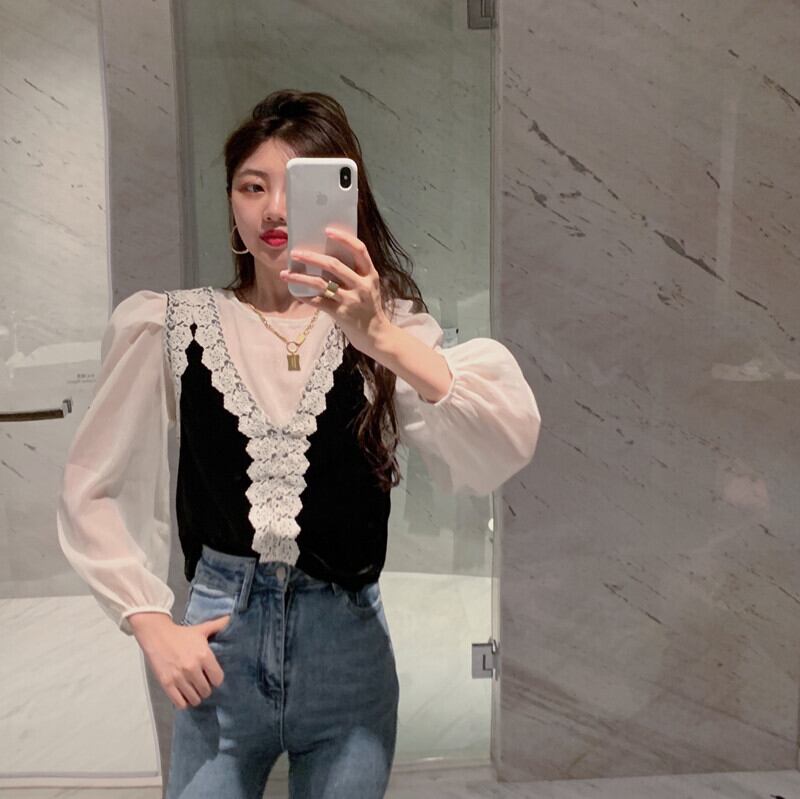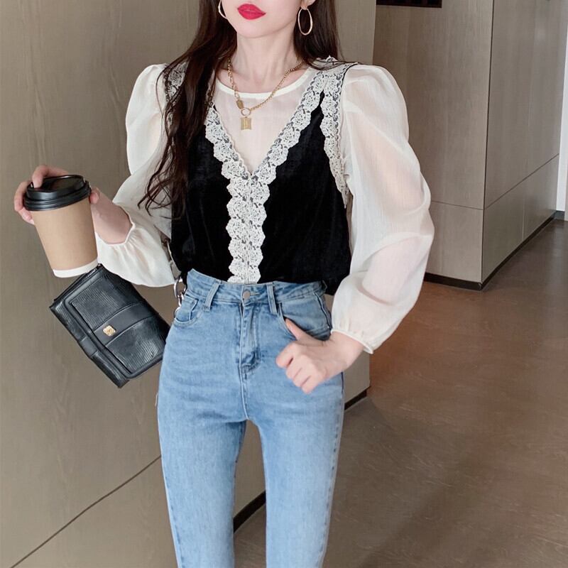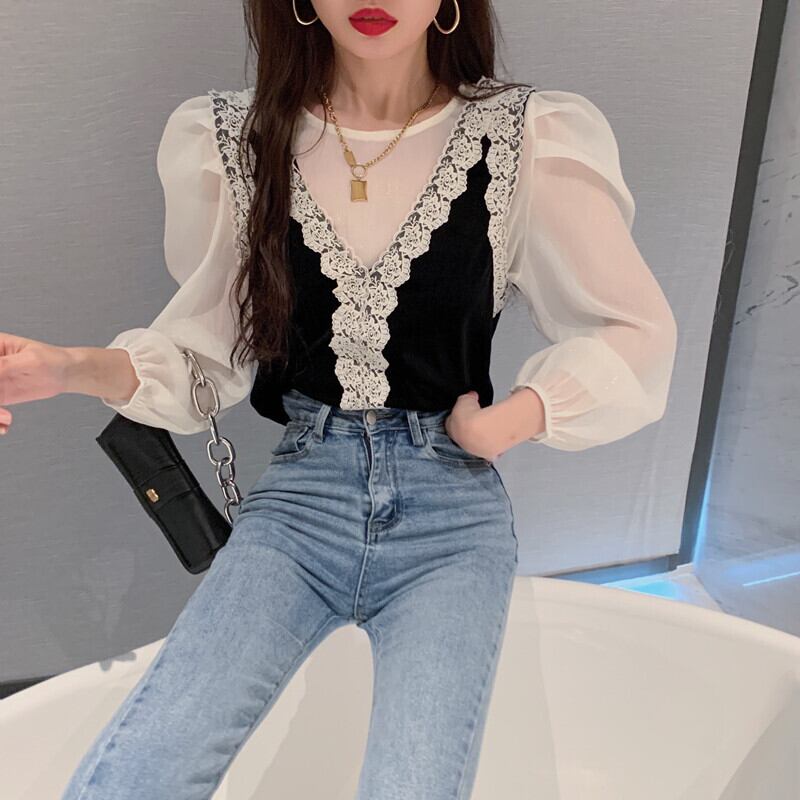 スタイルレースベルベットスリーブシャツ ジャケット レディース ステッチ ナナファッション37867878093