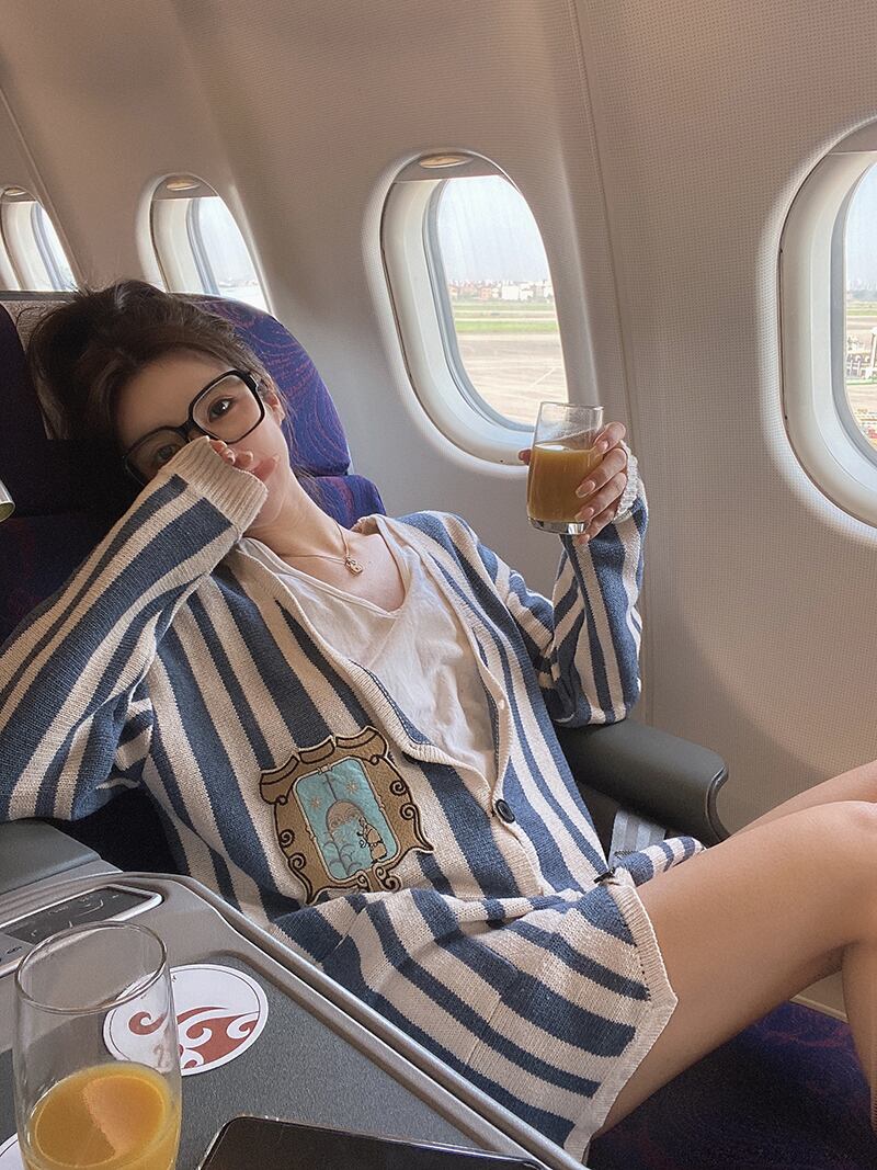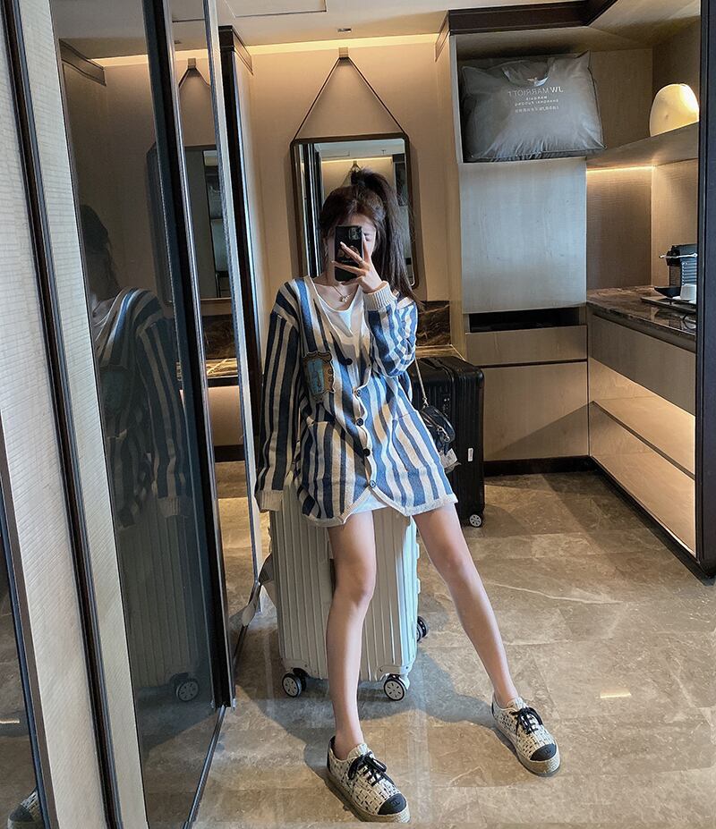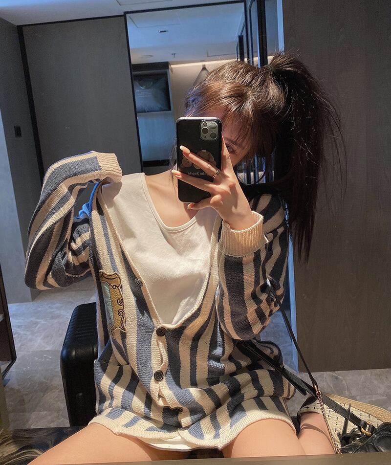 オータムストライプジャケット ロングルーズセーター ニットカーディガンレディース 秋物 ナナファッション84806562493