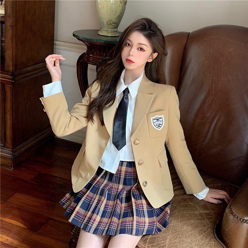 色:白いスーツ,カードカラースーツ,赤と青のスカート,黒スカート,白いシャツ(ネクタイを送信)