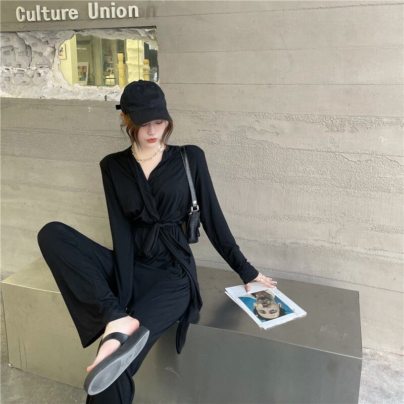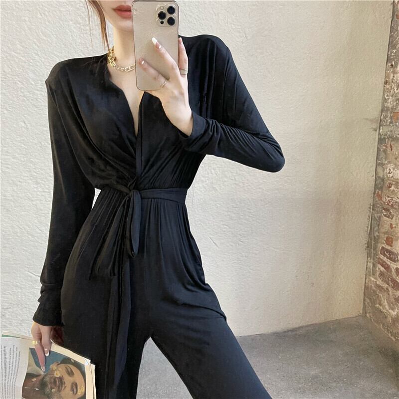 パンツ スプリングオータムウェストスリムハイウェストVネックカジュアルジャンプスーツ オールインワン ロング 春物 秋物 ナナファッション33277720730