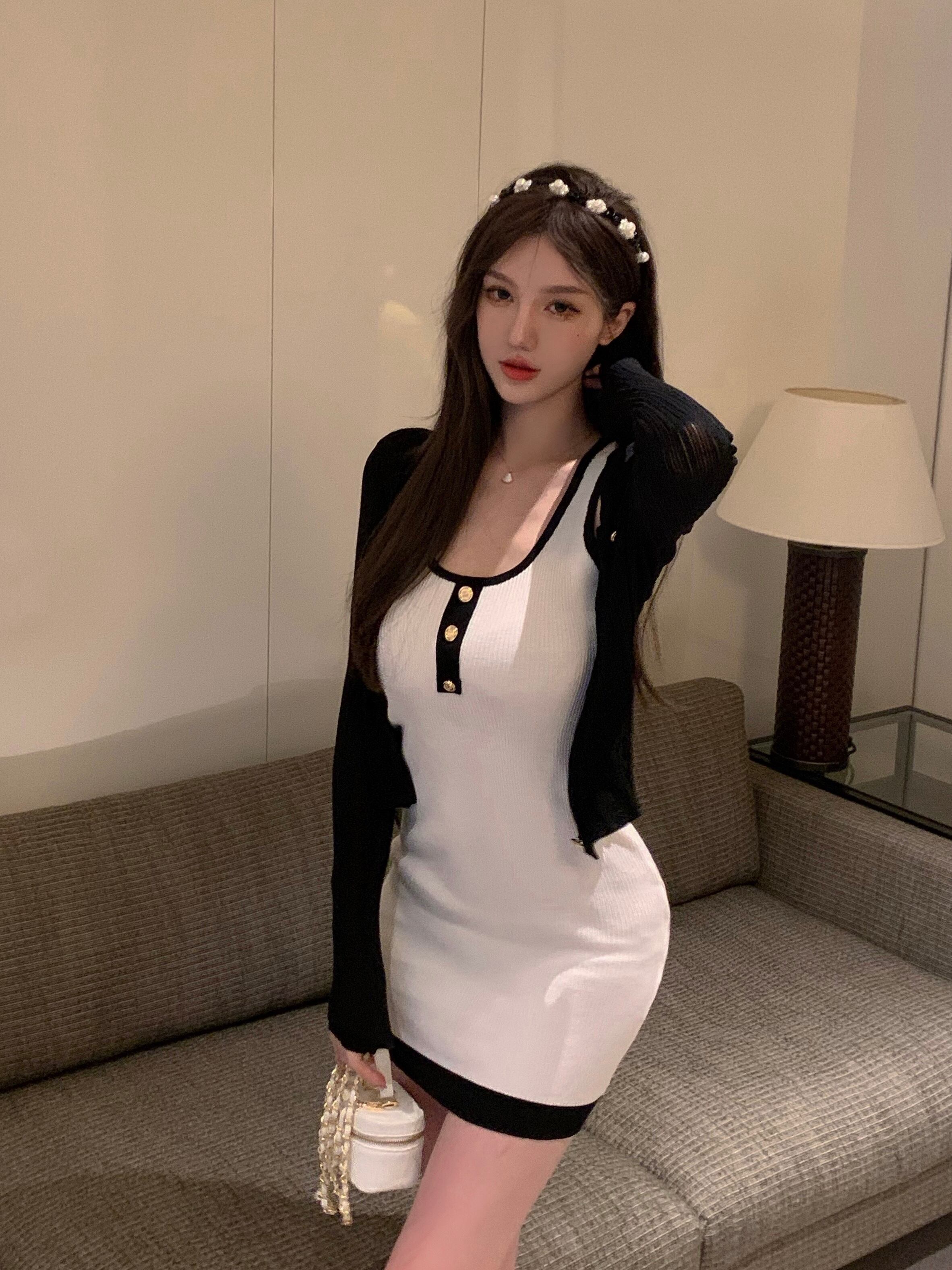 色:黒のインナースカート,白いスカート,黒いジャケット,白いコート