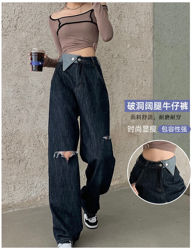 ジーンズ オータムスタイルアシンメトリーハイウェスト薄手ルーズ 秋物 ナナファッション73982923827