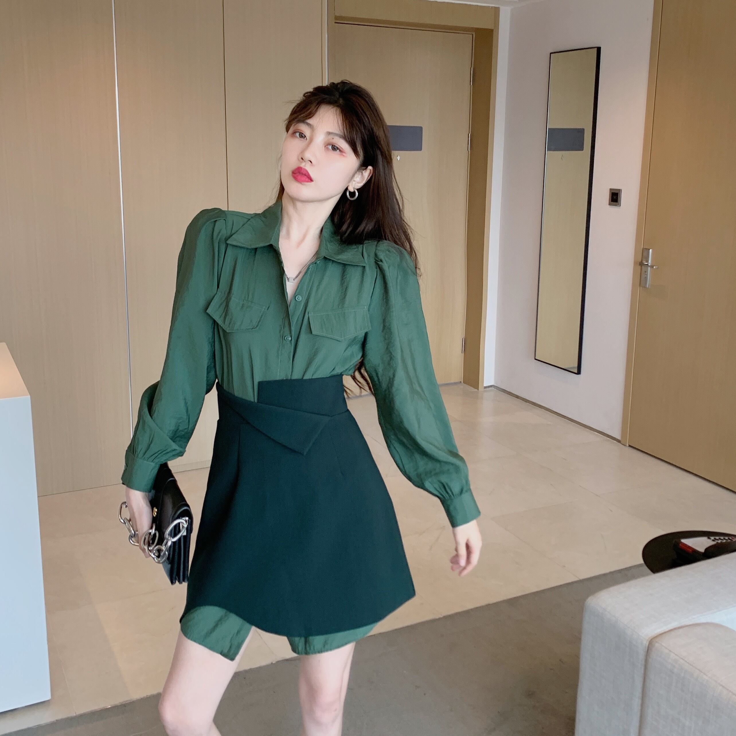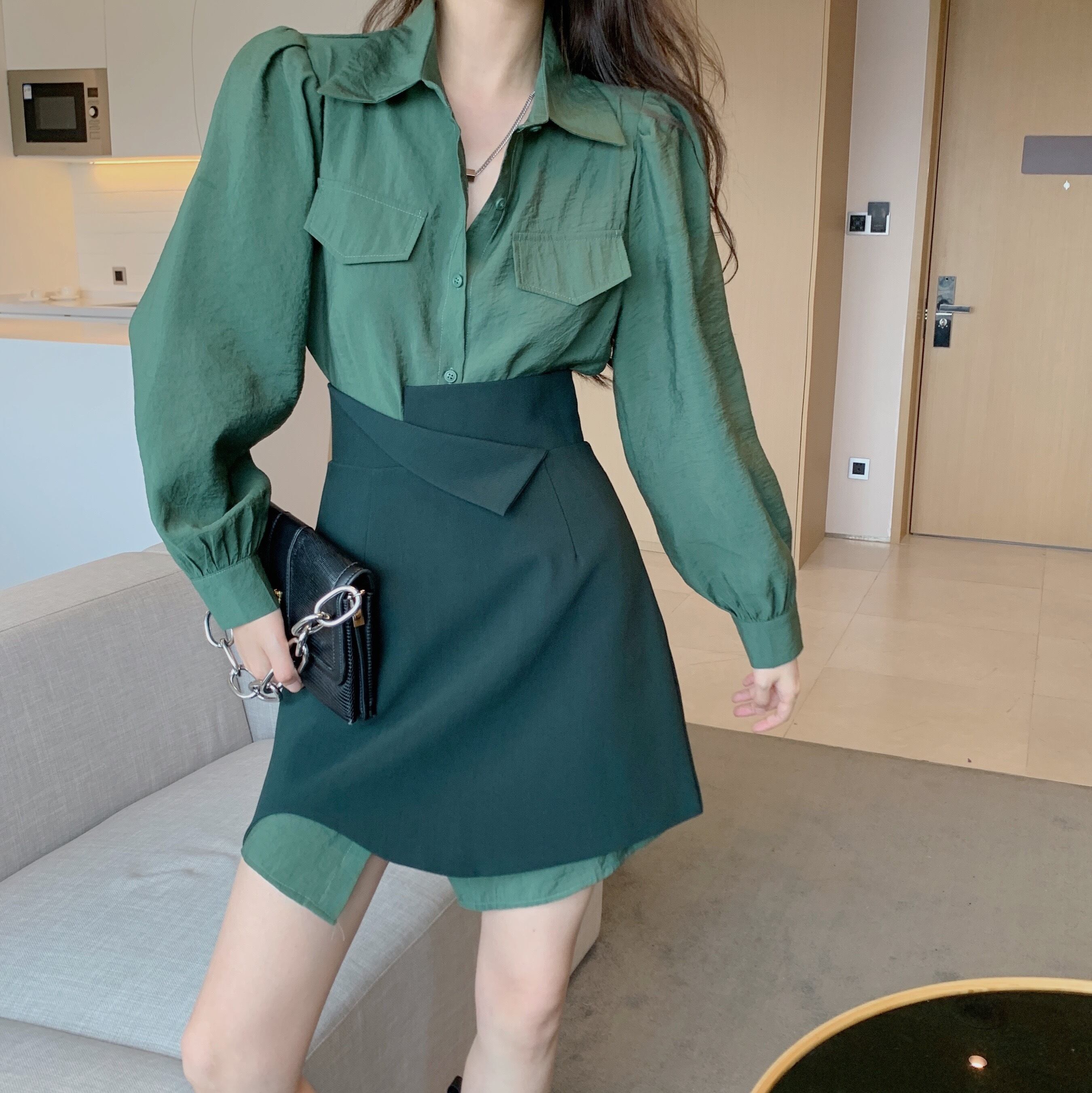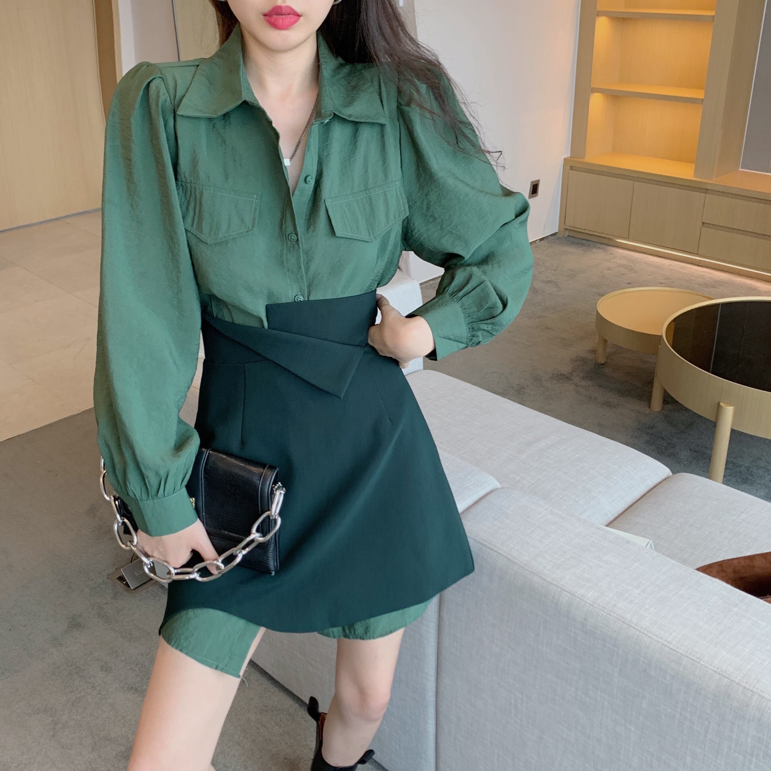 オータムスタイルシャツ ハイウェスト薄手Aラインスカート レディース ロング 秋物 ナナファッション75868920508