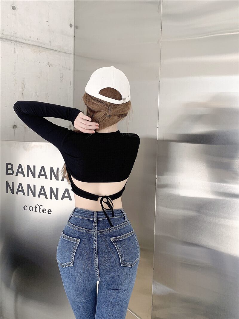 Tシャツ オータムスリムショートホルタートップス ロング 秋物 ナナファッション49154697899