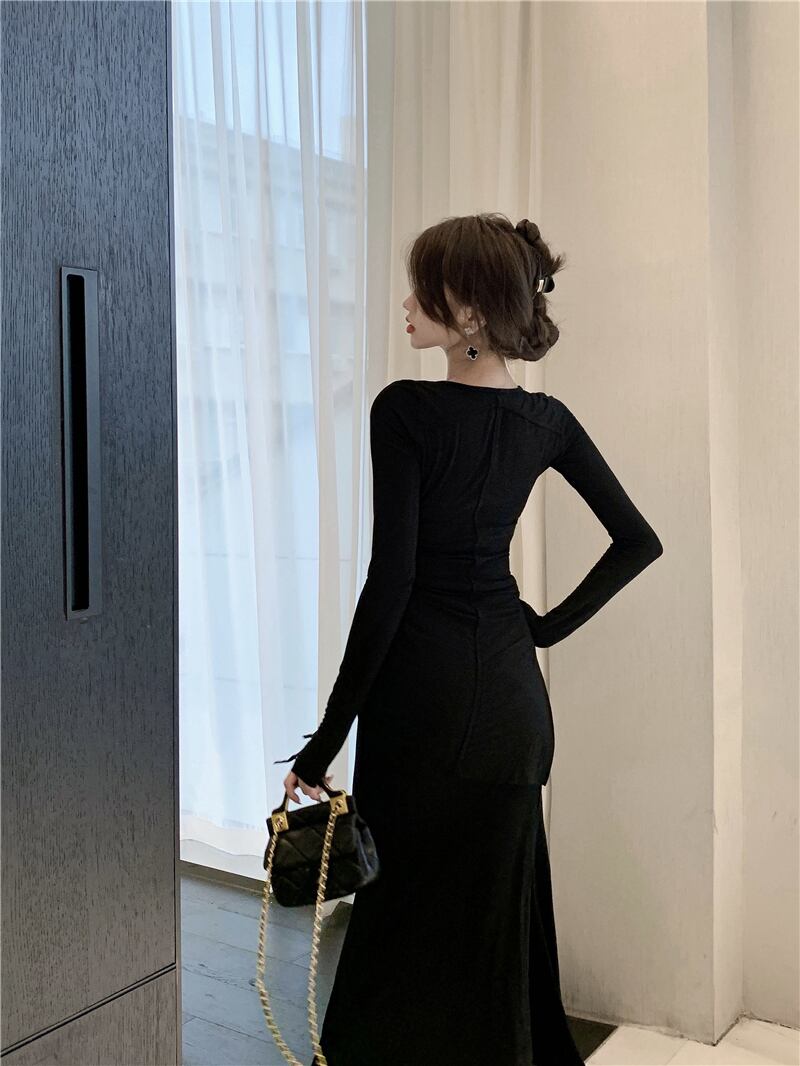 スタイルブラックスリムハイウェスト ロング ブラウス ストリート オータム 秋物 スカート ナナファッション34295067719