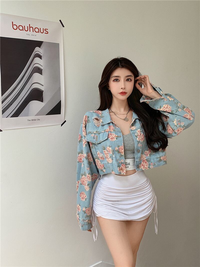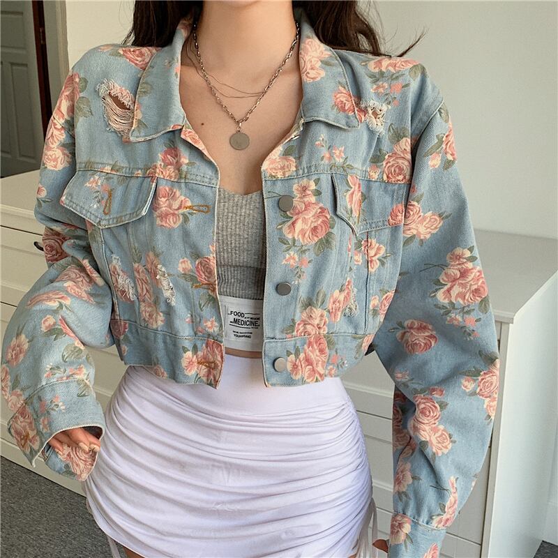 ショートジャケット オータムスタイルプリント柄ルーズ ロング 秋物 ナナファッション3738674831