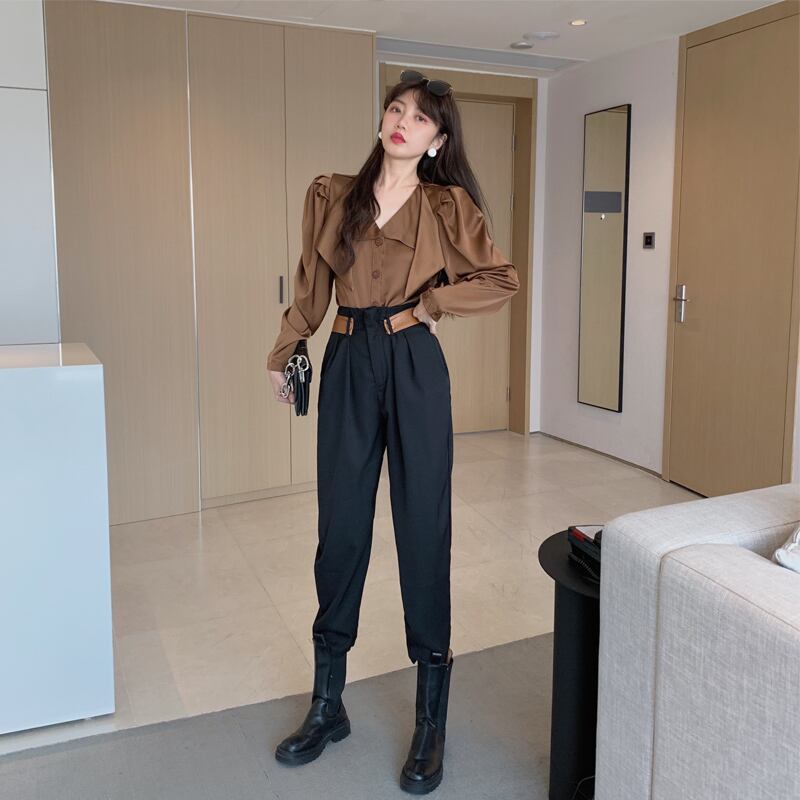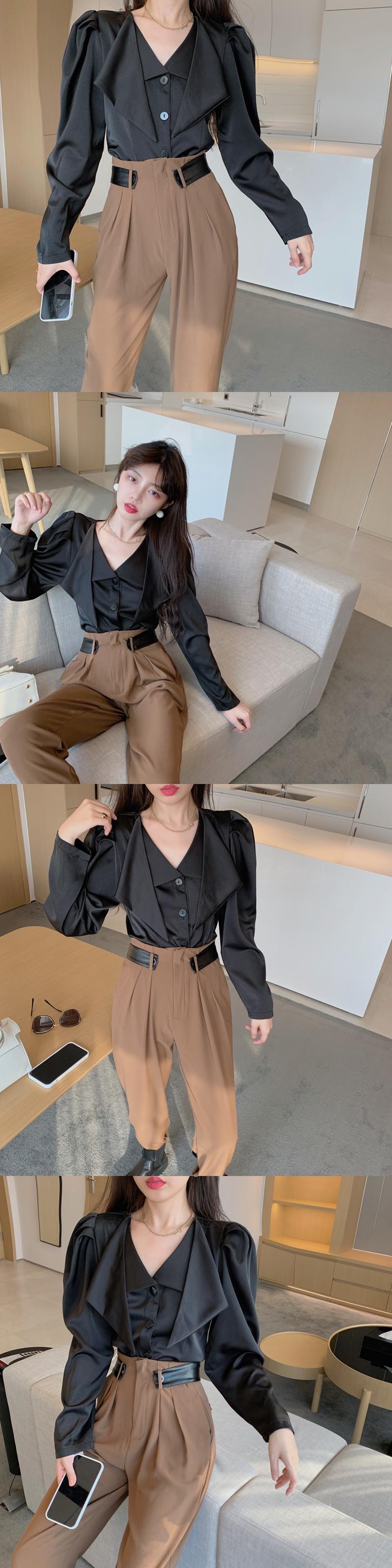 カラースリーブシャツ ハイウェストウェストルーズスリム ナナファッション94626667685