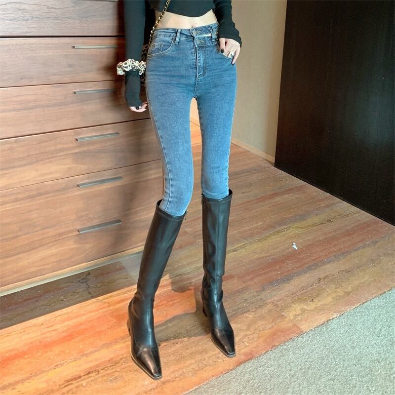 オータムウィンタースリムジーンズ ハイウェストウェストパンツ 秋物 冬物 ナナファッション95578570999