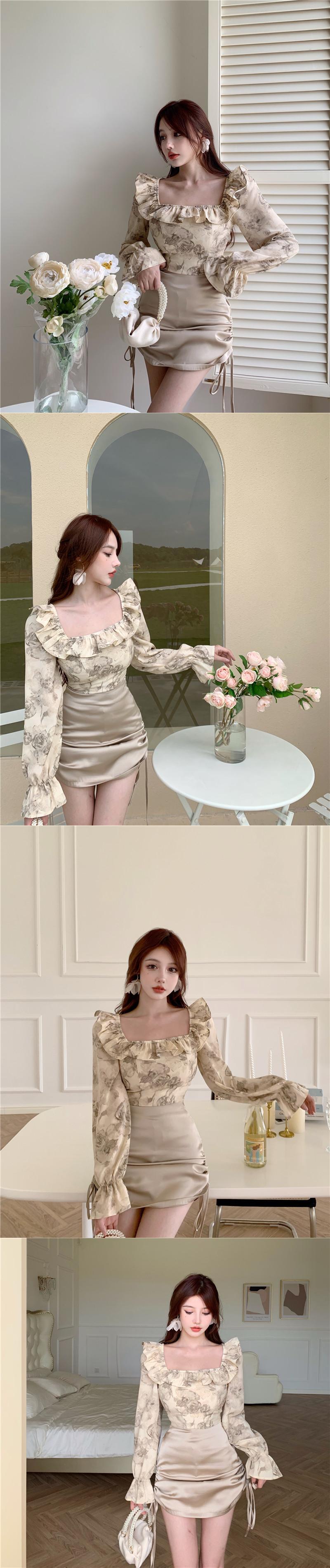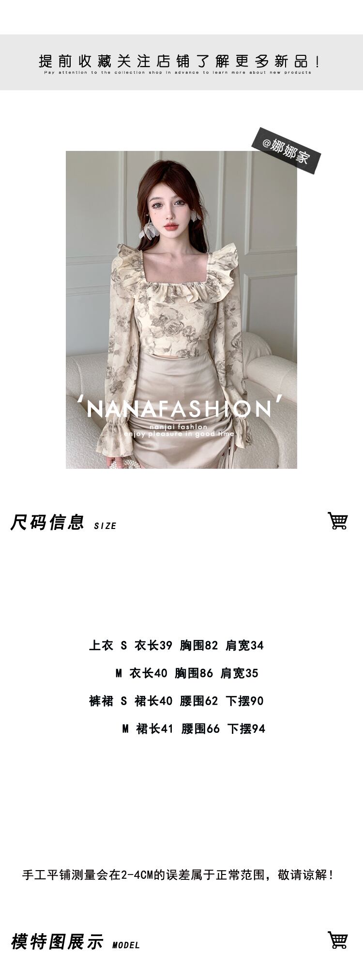 サマーフローラルシフォントップス スカート レッド 大人ガーリー スウィート キュート カジュアル 夏物 花柄 ナナファッション71686097090