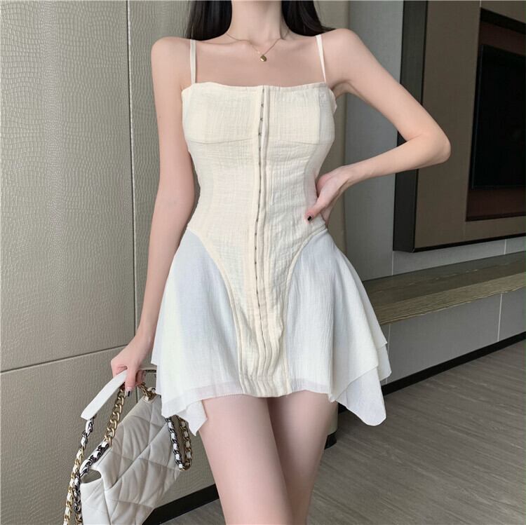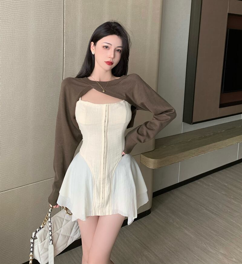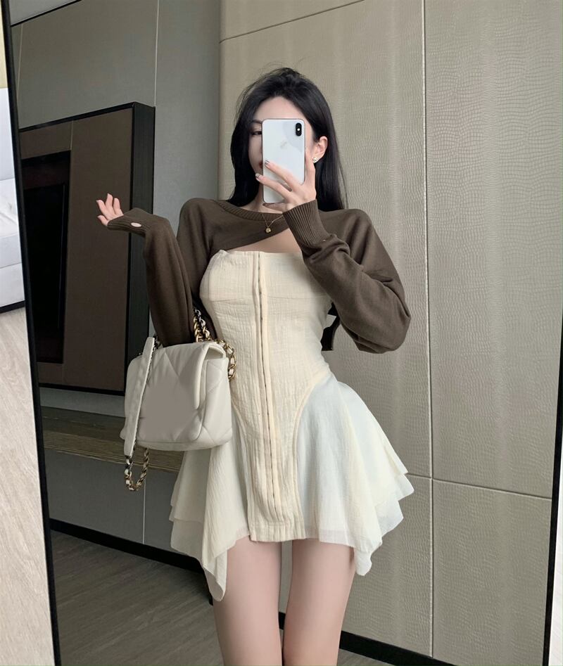 色:オフホワイトのドレス,コーヒーカラーブラウス