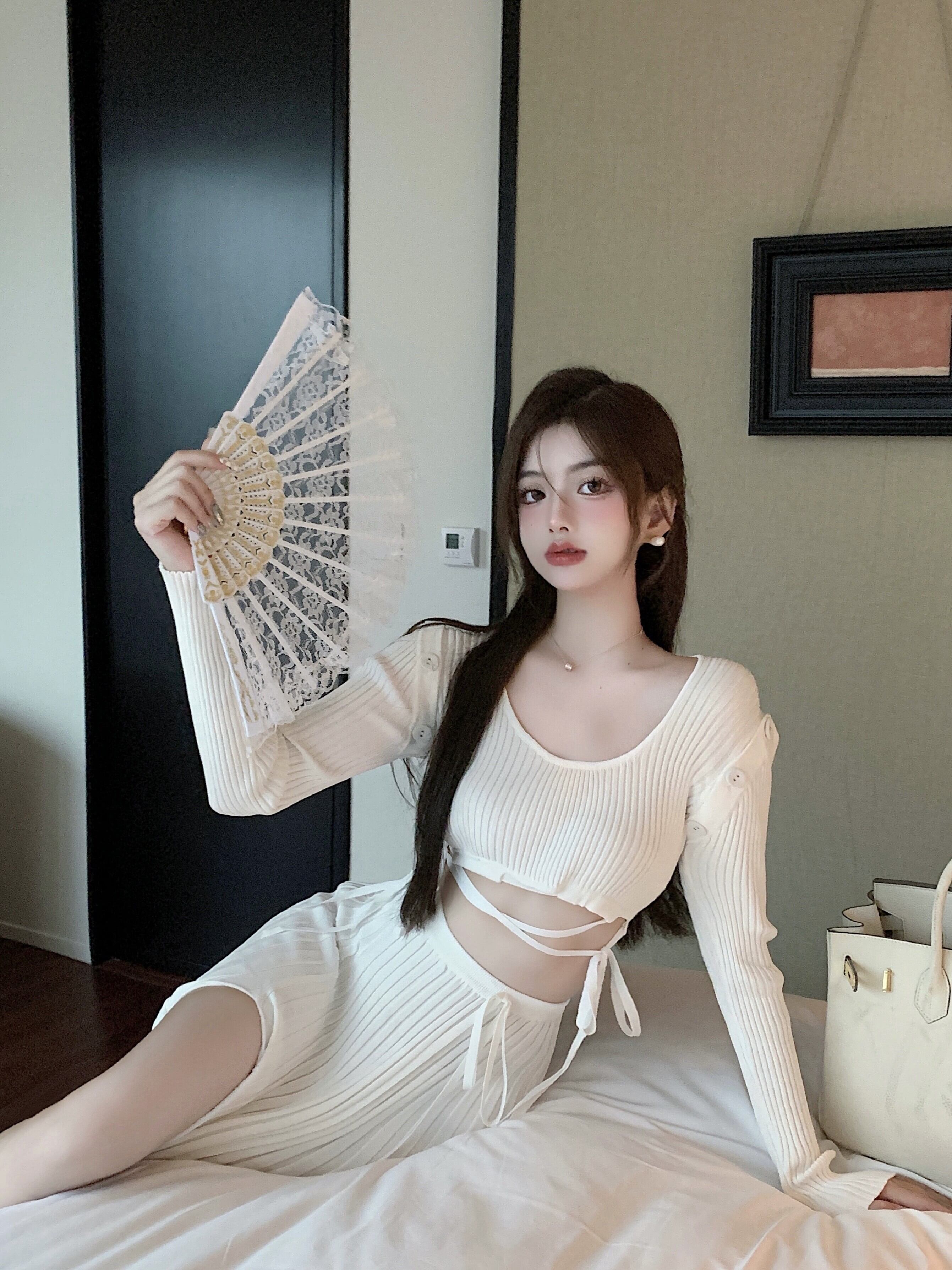 レッドスタイルトップス ハイウェストロングスカート レース ストリート 大人ガーリー スウィート キュート カジュアル レースアップ ナナファッション24325810842