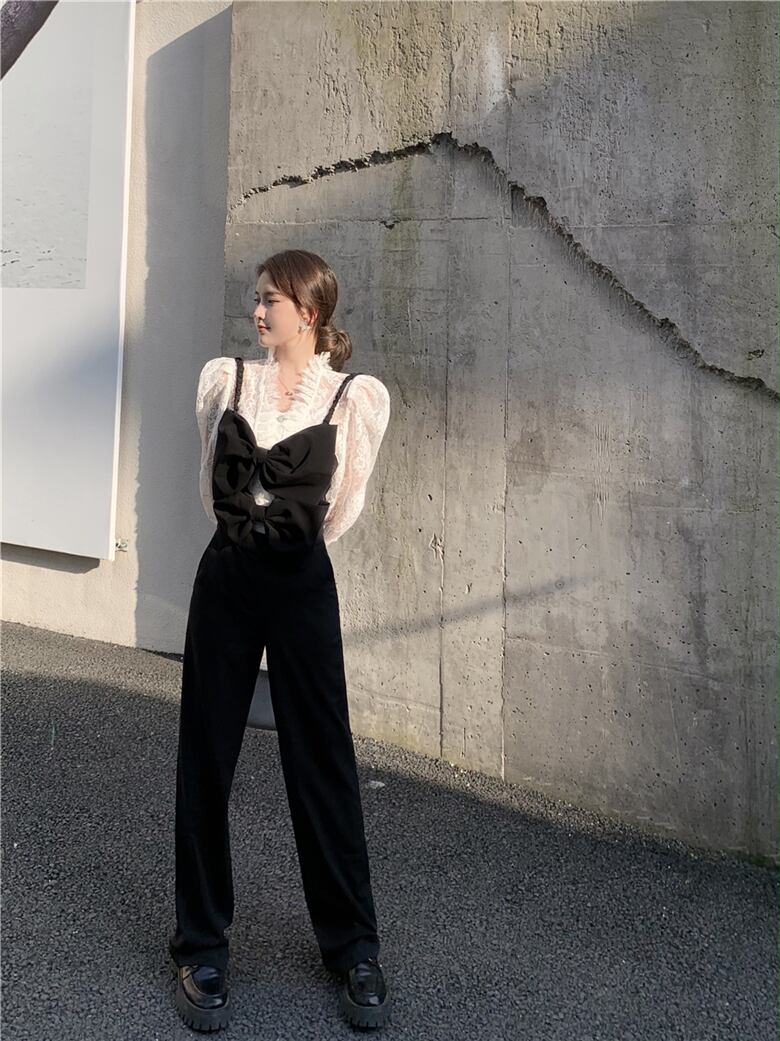 オータムレッドホワイトシャツ ジャンプスーツ オールインワン カジュアル 秋物 ナナファッション73488623200