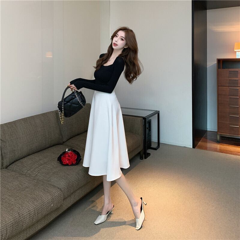 オータムスカート ニットトップス ハイウェストウェストスタイル ロング 秋物 スクウェア ナナファッション94571271799