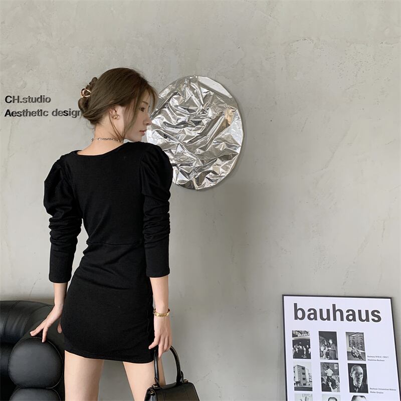 スタンダードスリーブウェストドレス プリーツスカート ロング レトロ ナナファッション97683622317