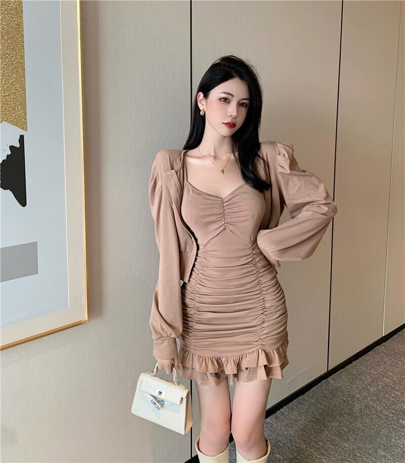 オータムプリーツドレス スリーブカーディガン 秋物 ナナファッション40489525978