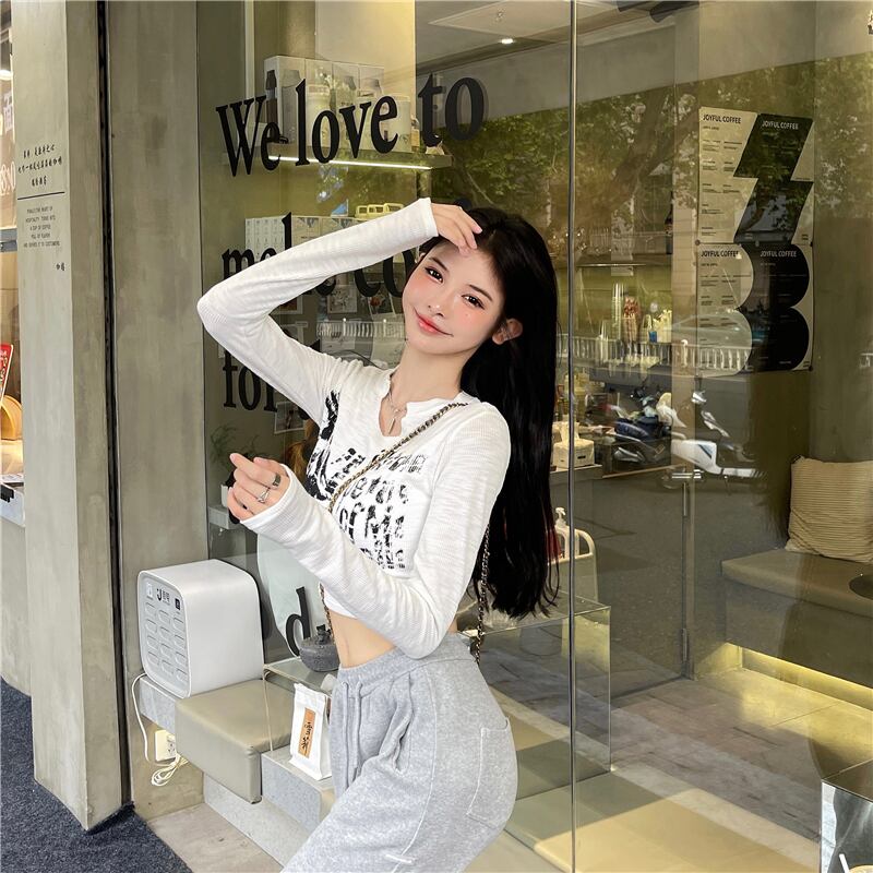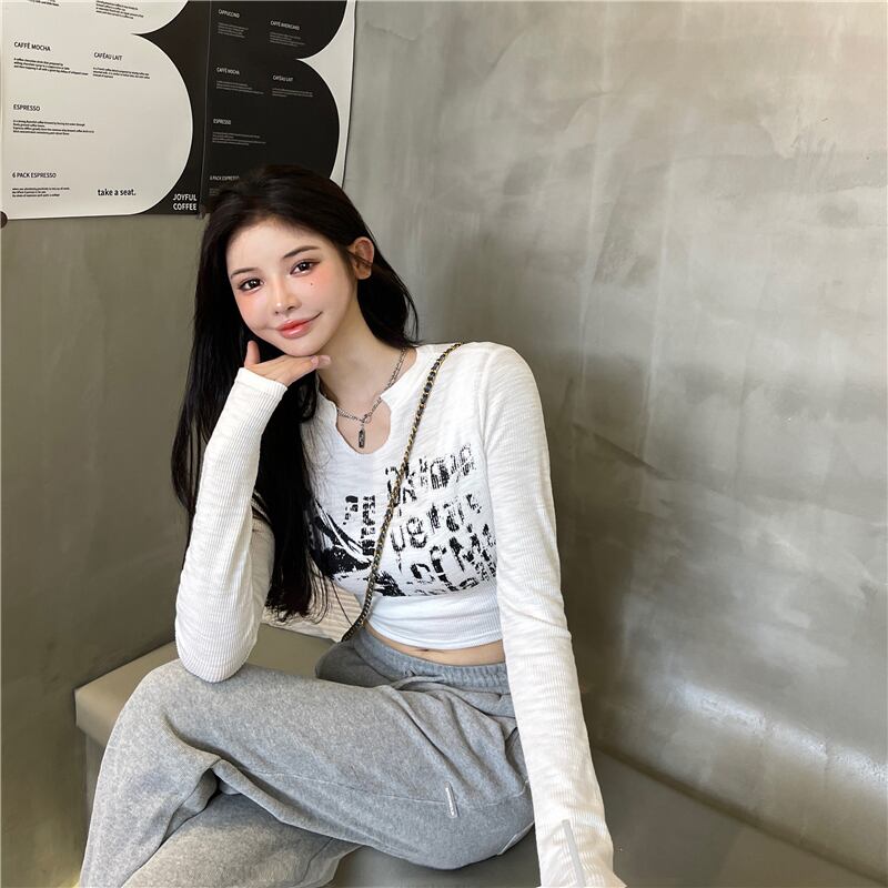 オータムスタイルスリム薄手Tシャツ ショートトップス ロング 秋物 ナナファッション52928920729