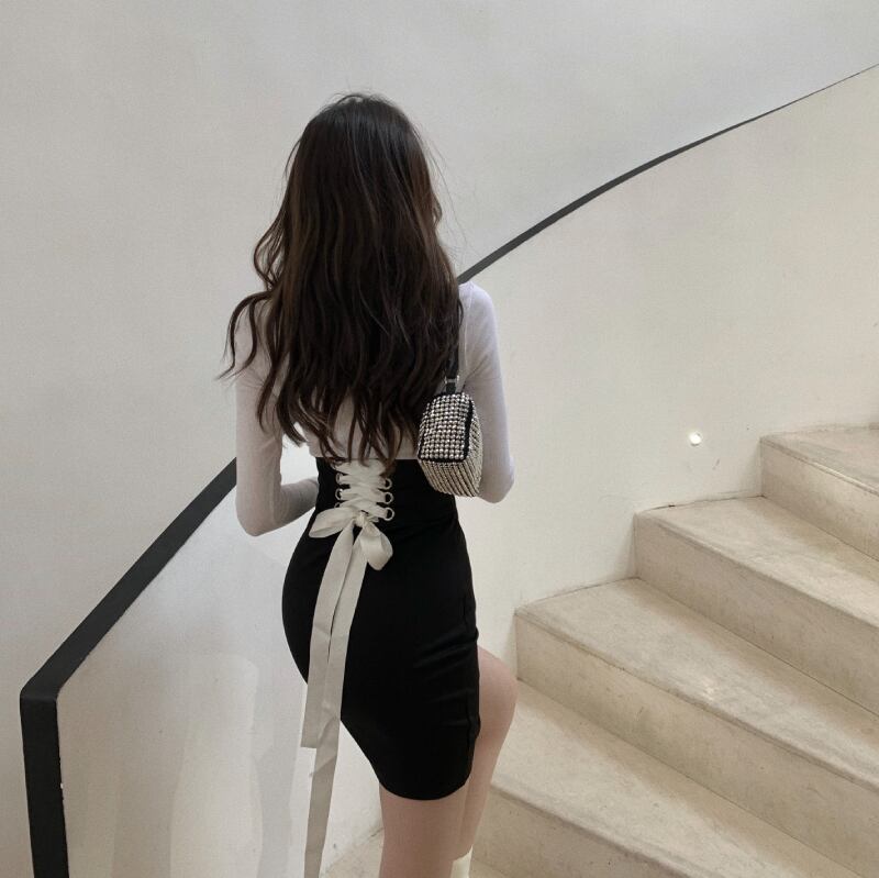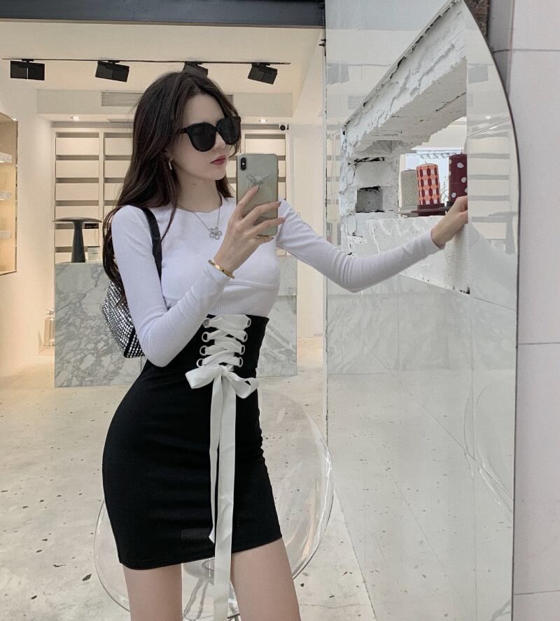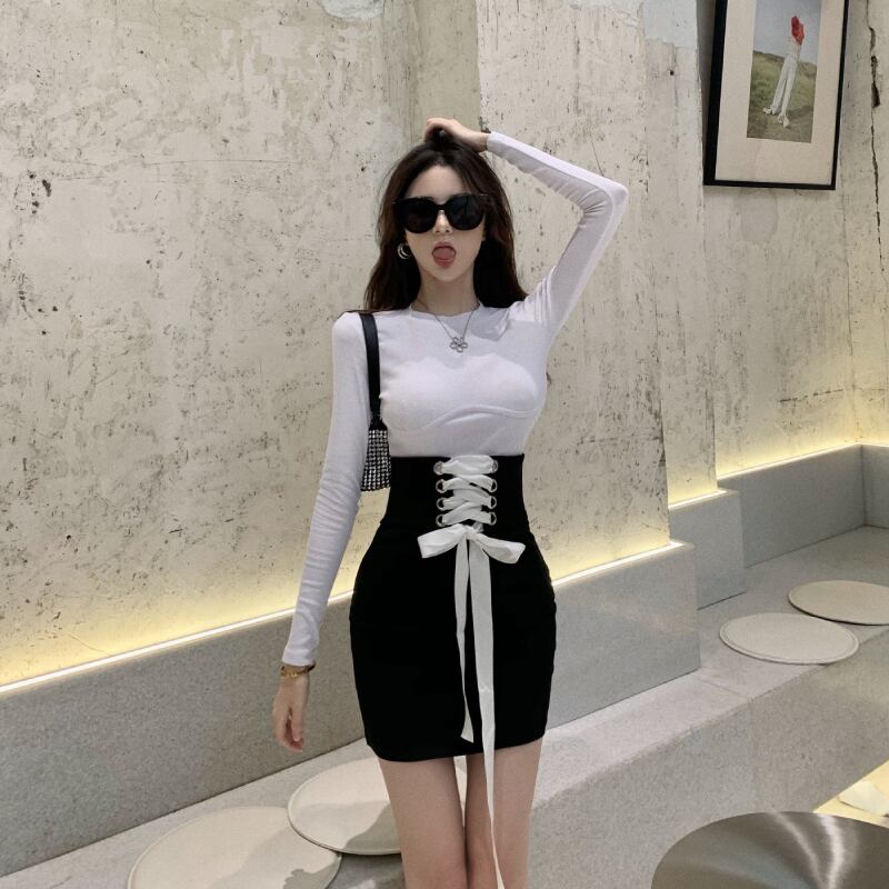 スタイルスカート ソリッド カラーTシャツ スリムウェストショート ロング ソリッドカラー ナナファッション3224648877