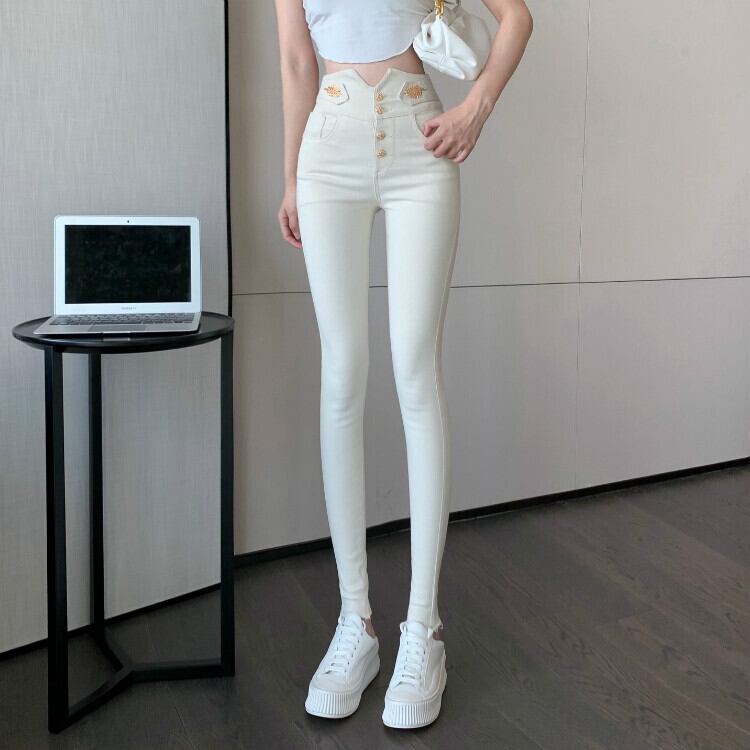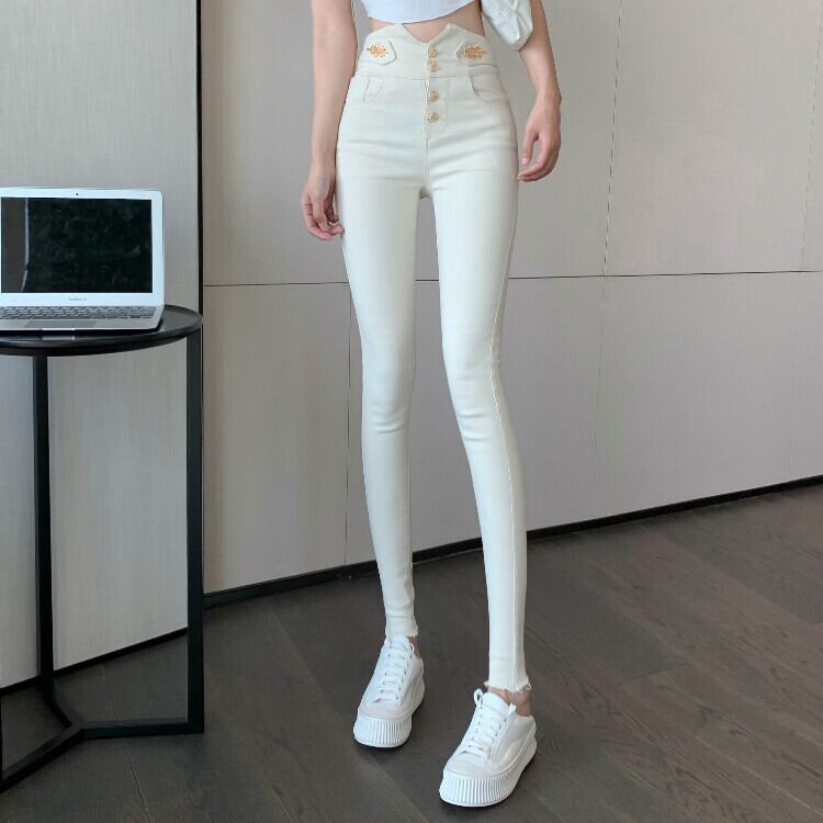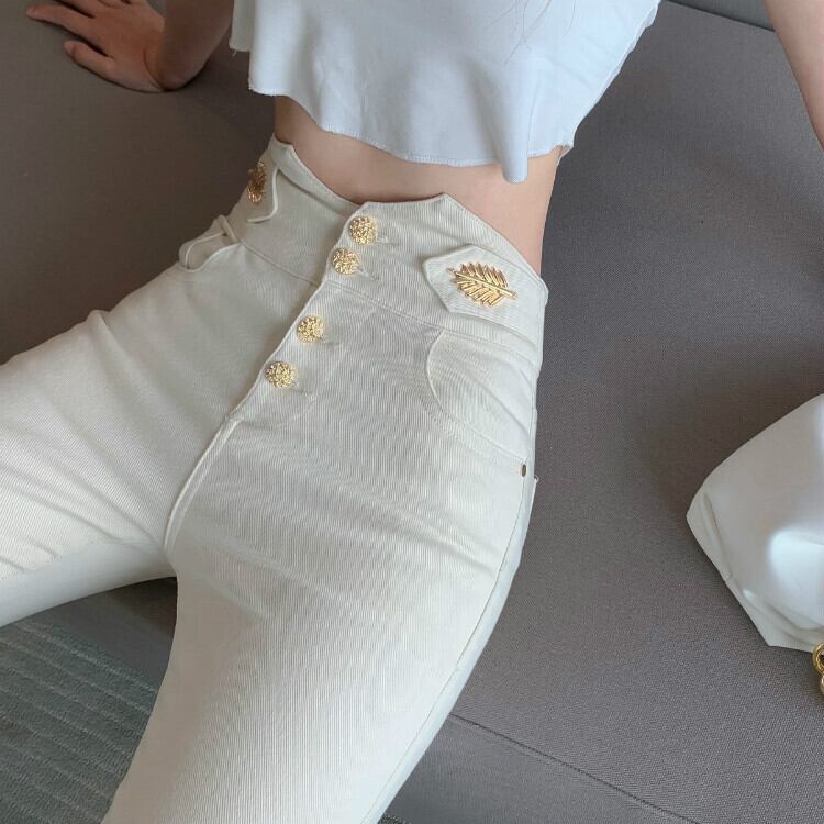 オータムハイウェストウェストメタル薄手ジーンズ パンツ ストリート 秋物 ナナファッション96763173413