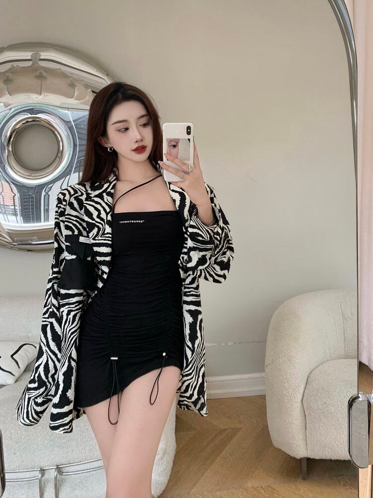 色:ヒョウのスーツ,ブラックサスペンダースカート
