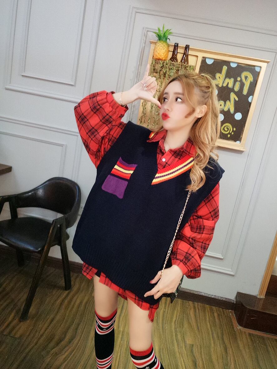 オータムドレス スカート ウィンター格子柄シャツ ニットセーター スタイル 秋物 冬物 ナナファッション9032193273