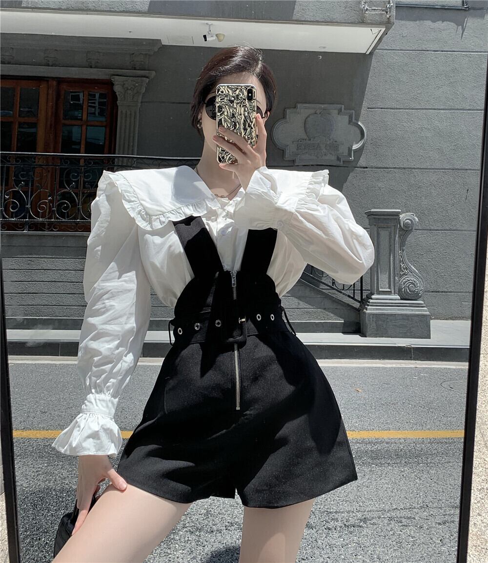 レッドスタイルカラーホワイトシャツ ハイウェストウェストショーツ レディース ストリート ブルマー ナナファッション54782934600