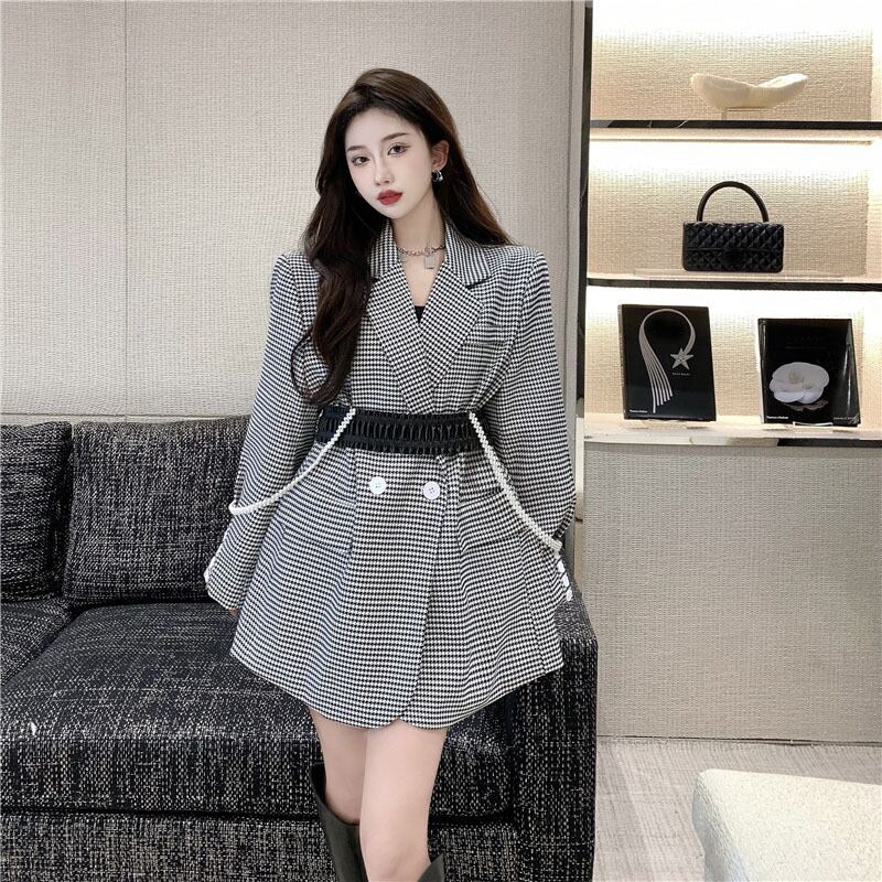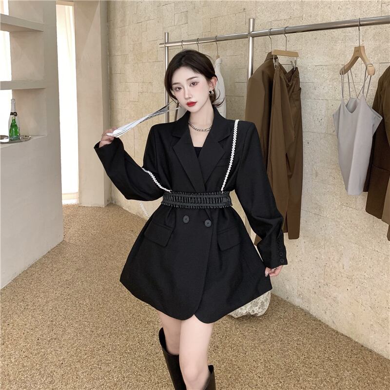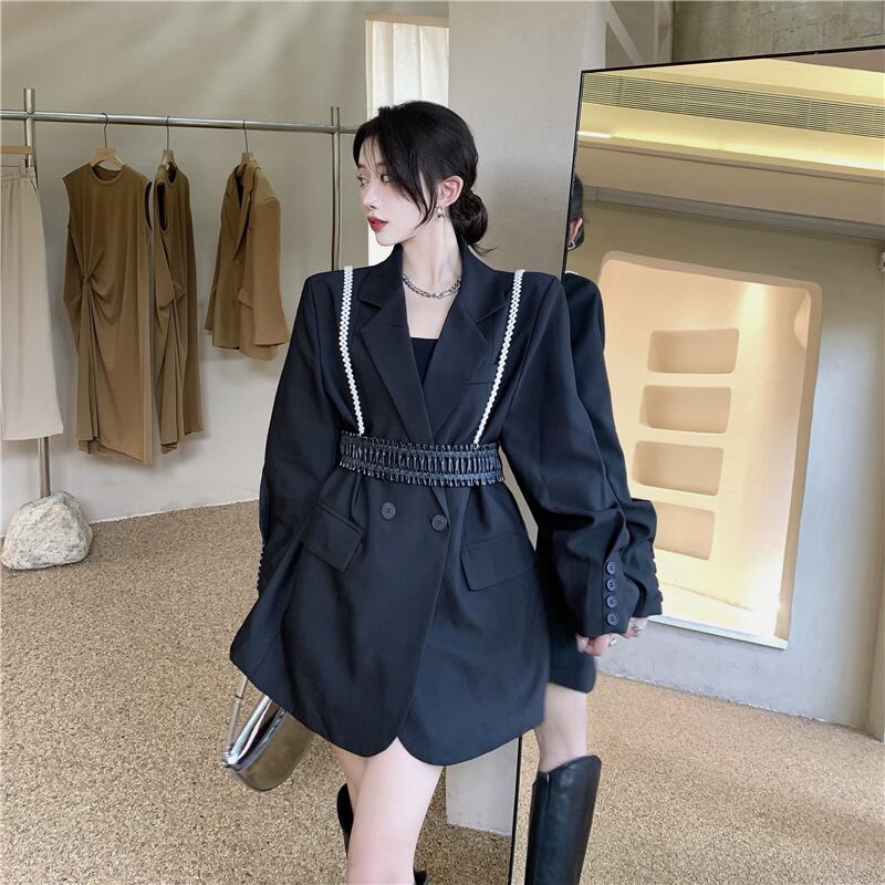 ルーズ長袖スリーブジャケット パールセット ロング ストリート 真珠 ナナファッション60214464612