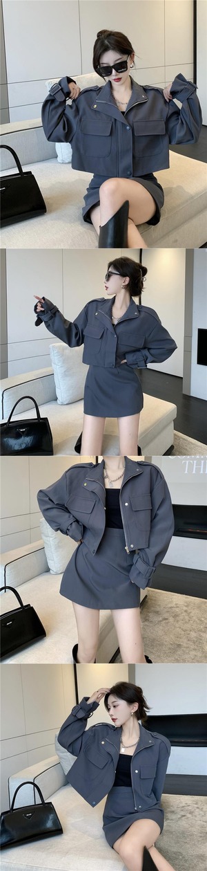 レッドカジュアルジャケット ハイウェスト薄手アームスカート ロング ストリート ナナファッション9713428386