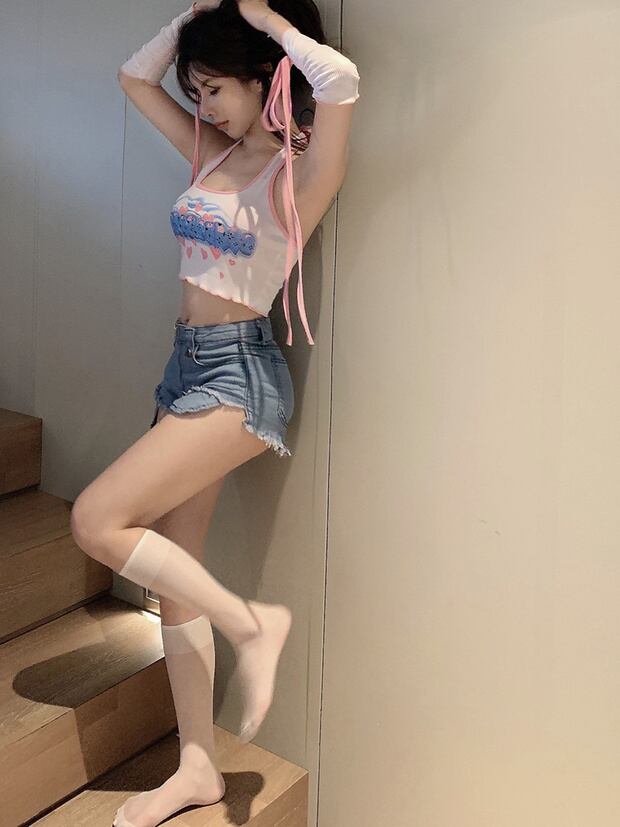 ホルターサマープリントスリーブTシャツ ショートトップス レディース 大人ガーリー スウィート キュート カジュアル 夏物 ナナファッション24378430634