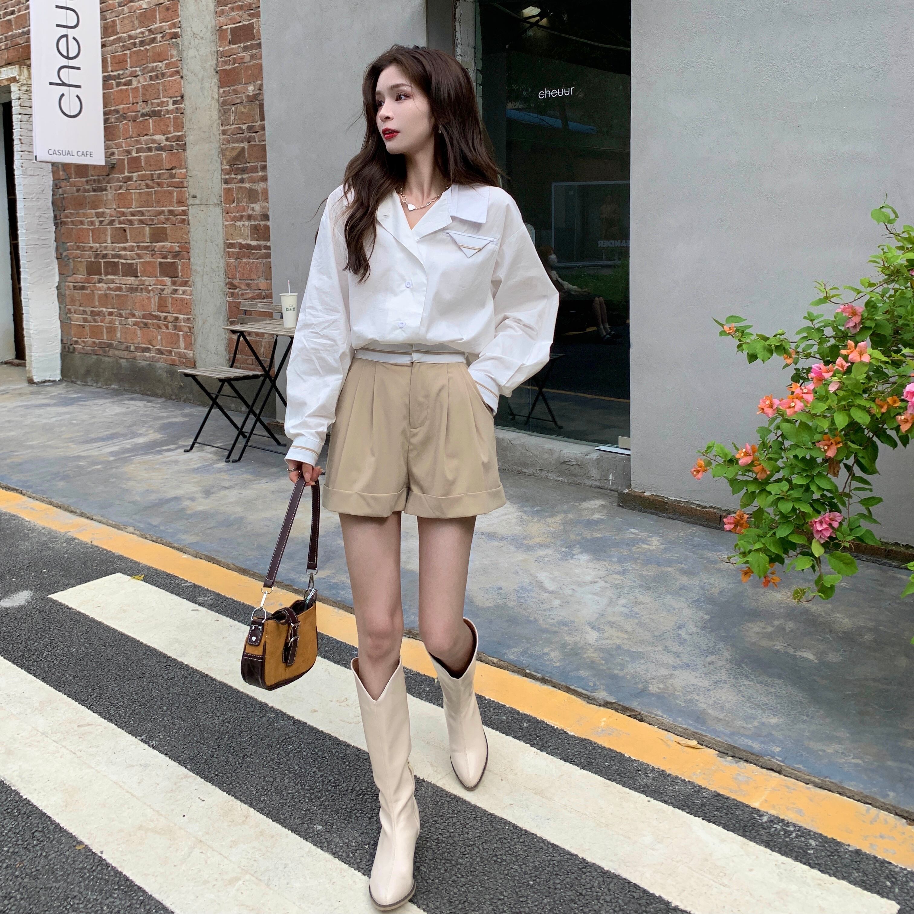 レッドシャツ カラーハイウェストカジュアルショーツ ロング ストリート ブルマー ナナファッション17861619782