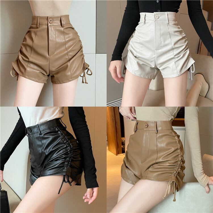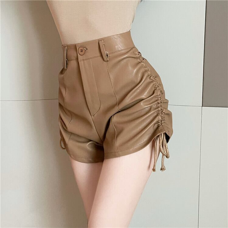 ショーツ オータムスタイルハイウェストウェストルーズAラインレザーパンツ 秋物 ブルマー ナナファッション90268772901