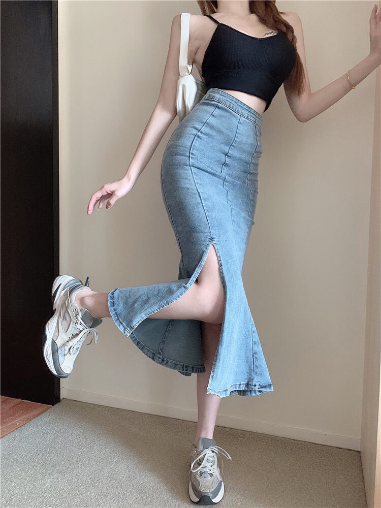 スカート サマーハイウェストウェスト薄手Aライン 夏物 ナナファッション79320197173