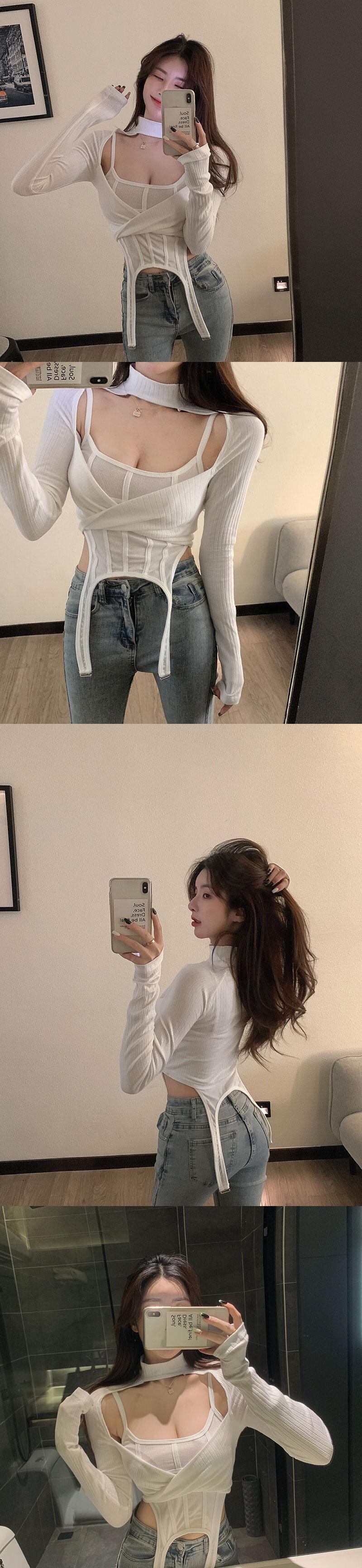 オータムレッドスリムトップス ロング 秋物 ナナファッション50880347268