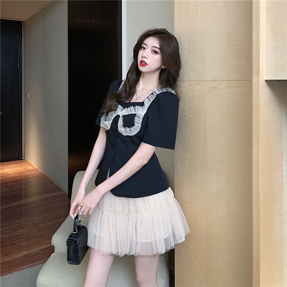 メッシュスリーブトップス スカート ステッチ ナナファッション57026828160