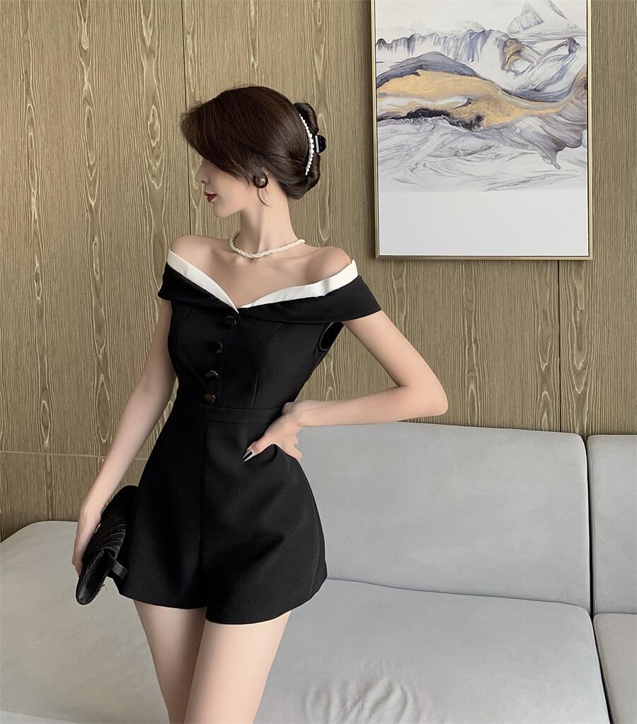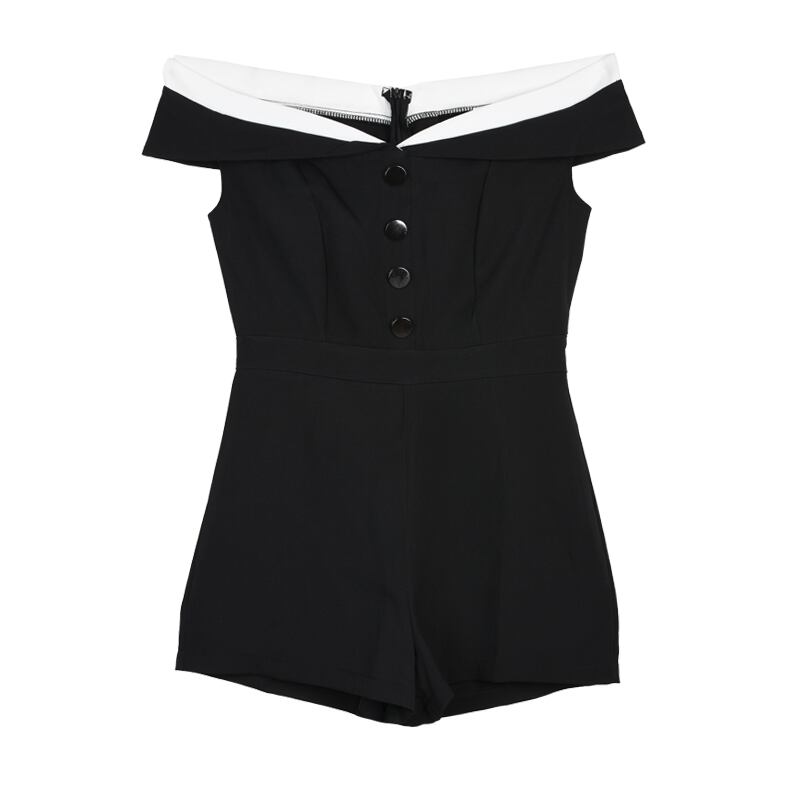ジャンプスーツ オールインワン サマーハイウェストブラックショーツ 夏物 ブルマー ナナファッション26795251616