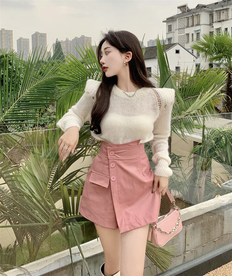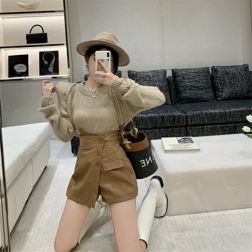 オータムウィンターセーター ハイウェストウェストレザースカート パンツ レディース 秋物 冬物 ナナファッション25139448120