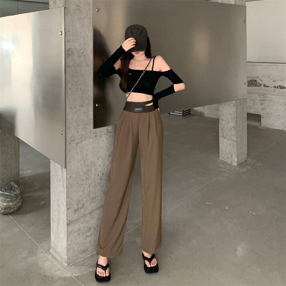 ハイウェストルーズ薄手カジュアルパンツ レディース ナナファッション77920942796