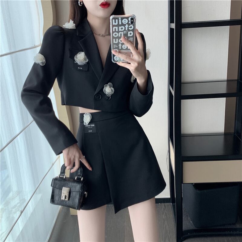 オータムレッドFlowerデザイン ショートコート 薄手パンツ スカート 秋物 フラワーデザイン ナナファッション86682893917