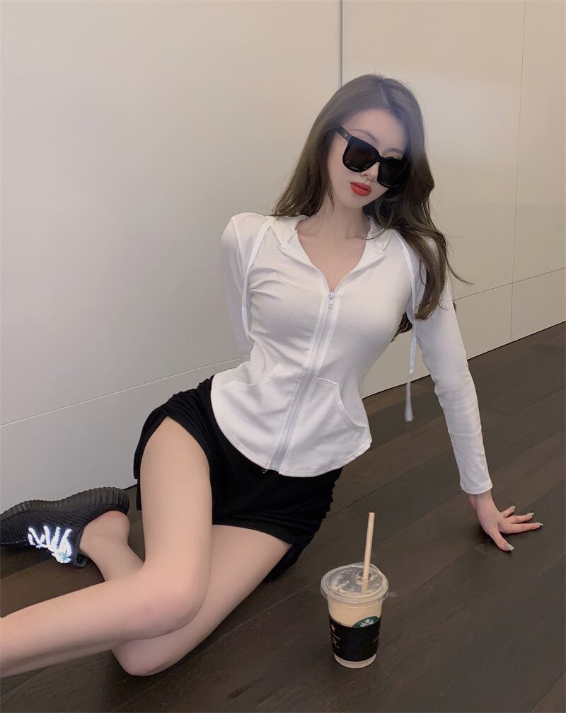 トップス オータムフードホワイトTシャツ レディース ロング 秋物 ナナファッション35049964275