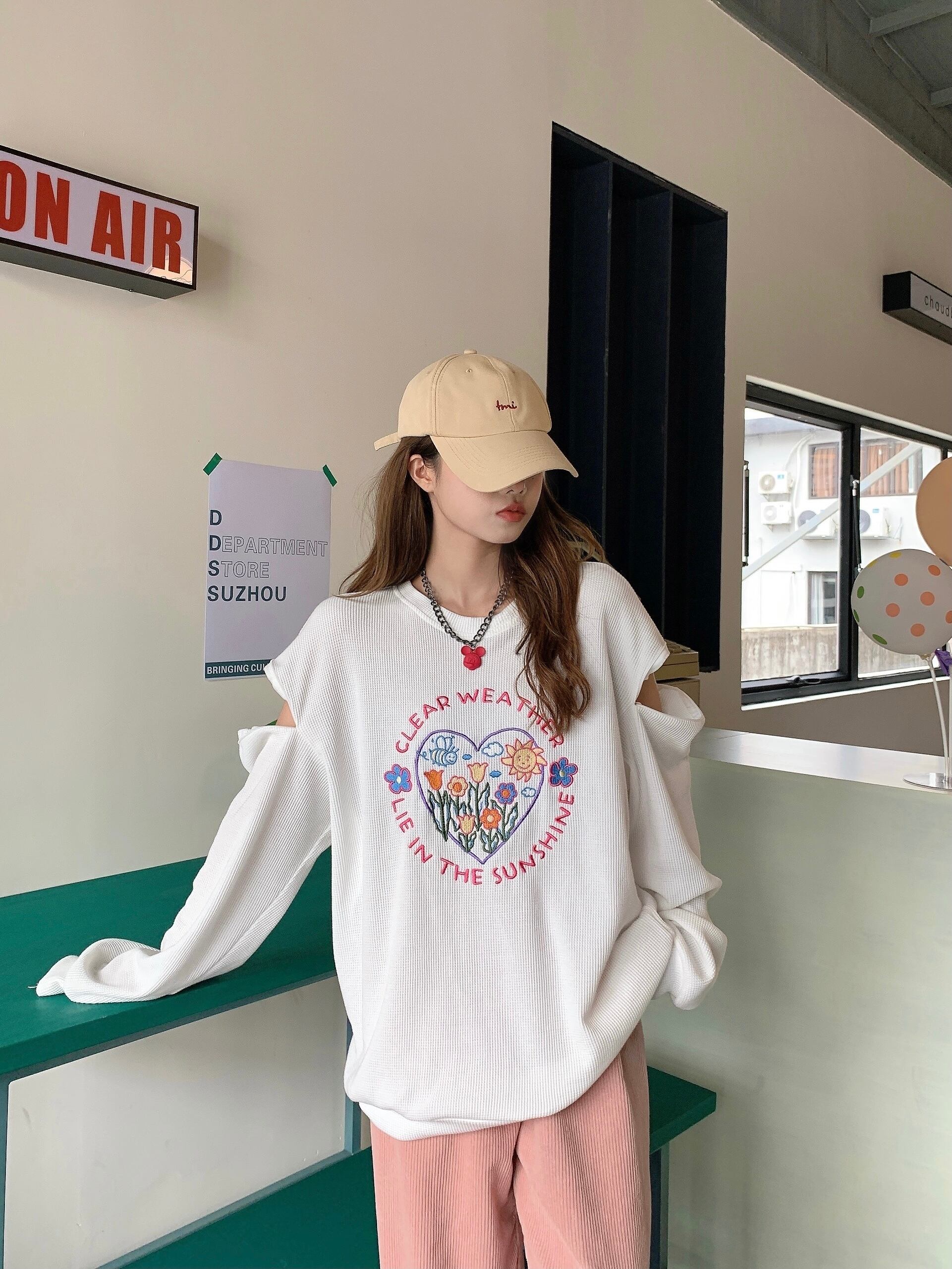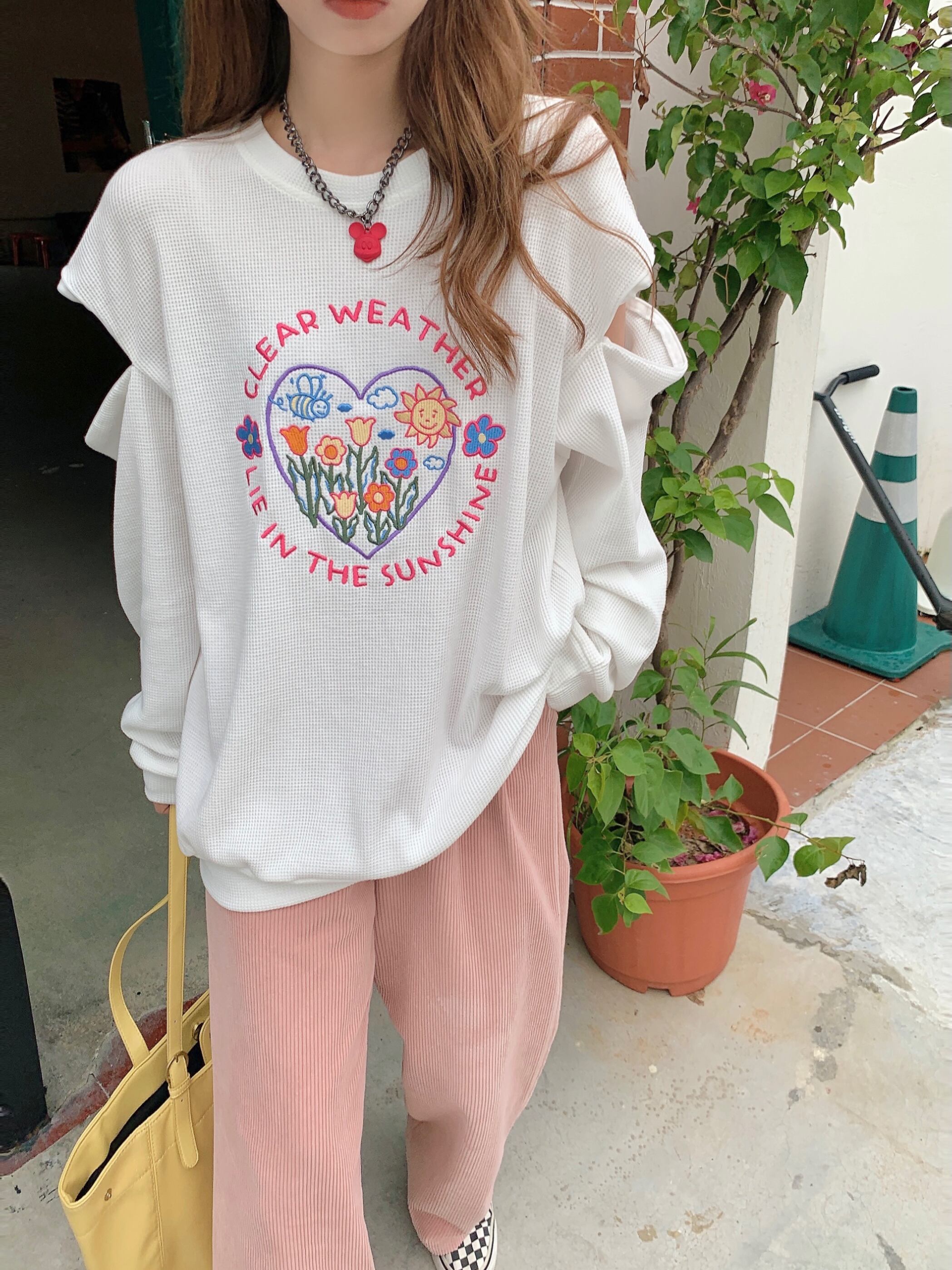 カジュアルセーター オータムルーズ刺繍薄手トップス 秋物 オフショルダー ナナファッション25119937166