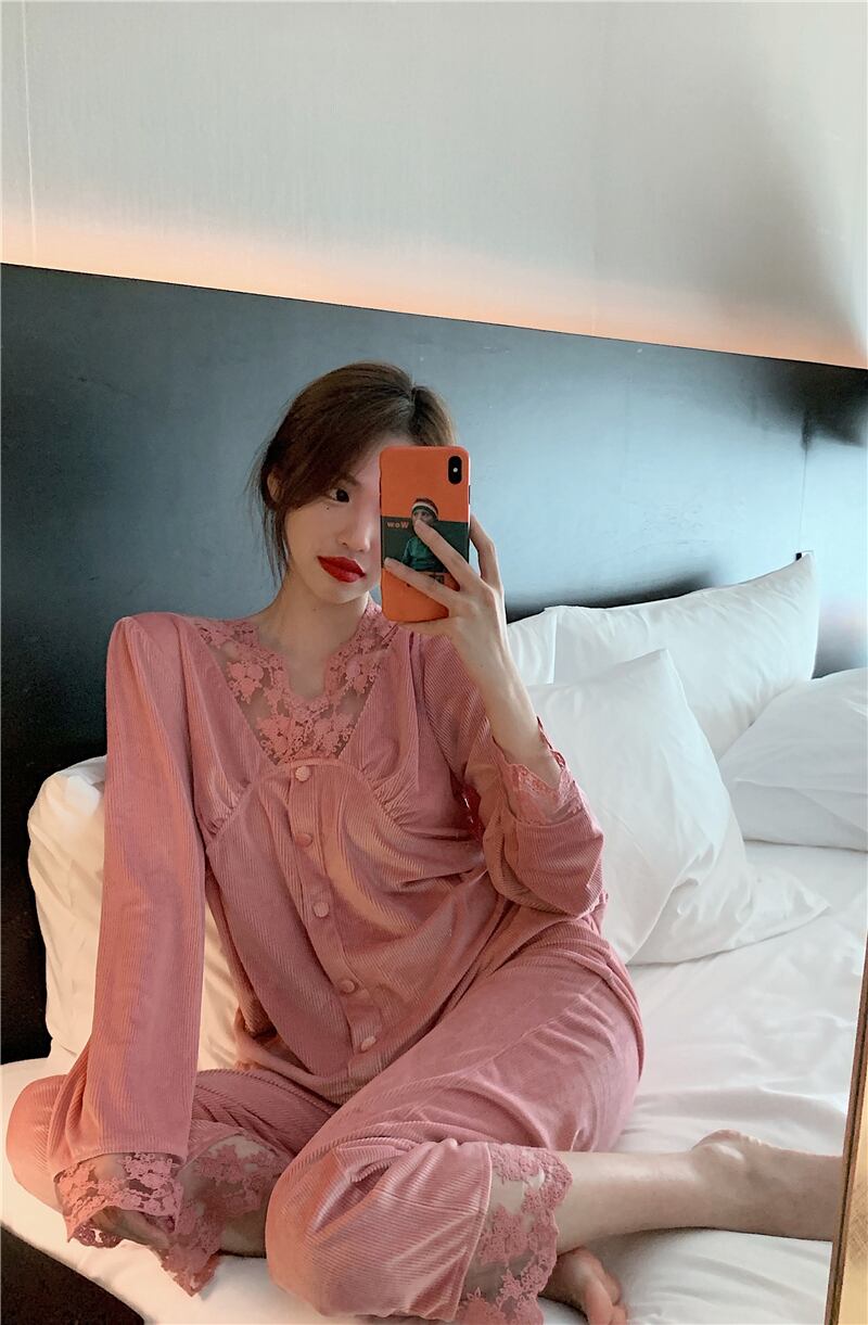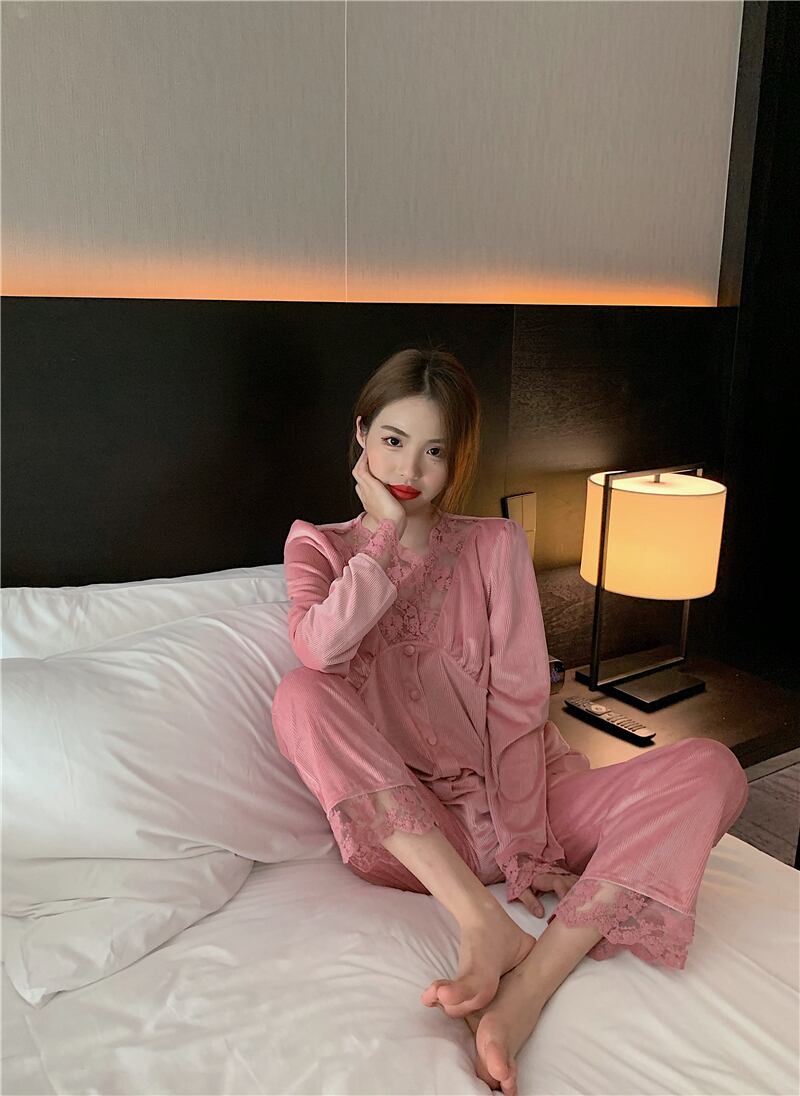 Vネックレースベルベットカジュアルレディースオータム ロング 大人ガーリー スウィート キュート 秋物 ナナファッション69161760795