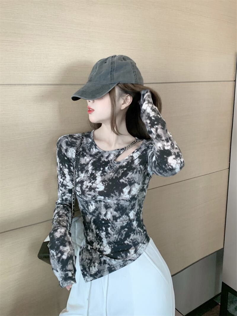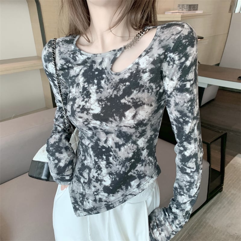 トップス スリムチェーン Tシャツ レディース ロング エラスティック 伸縮 ナナファッション45716699646