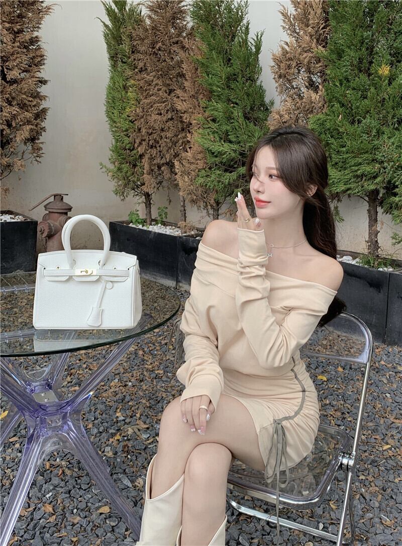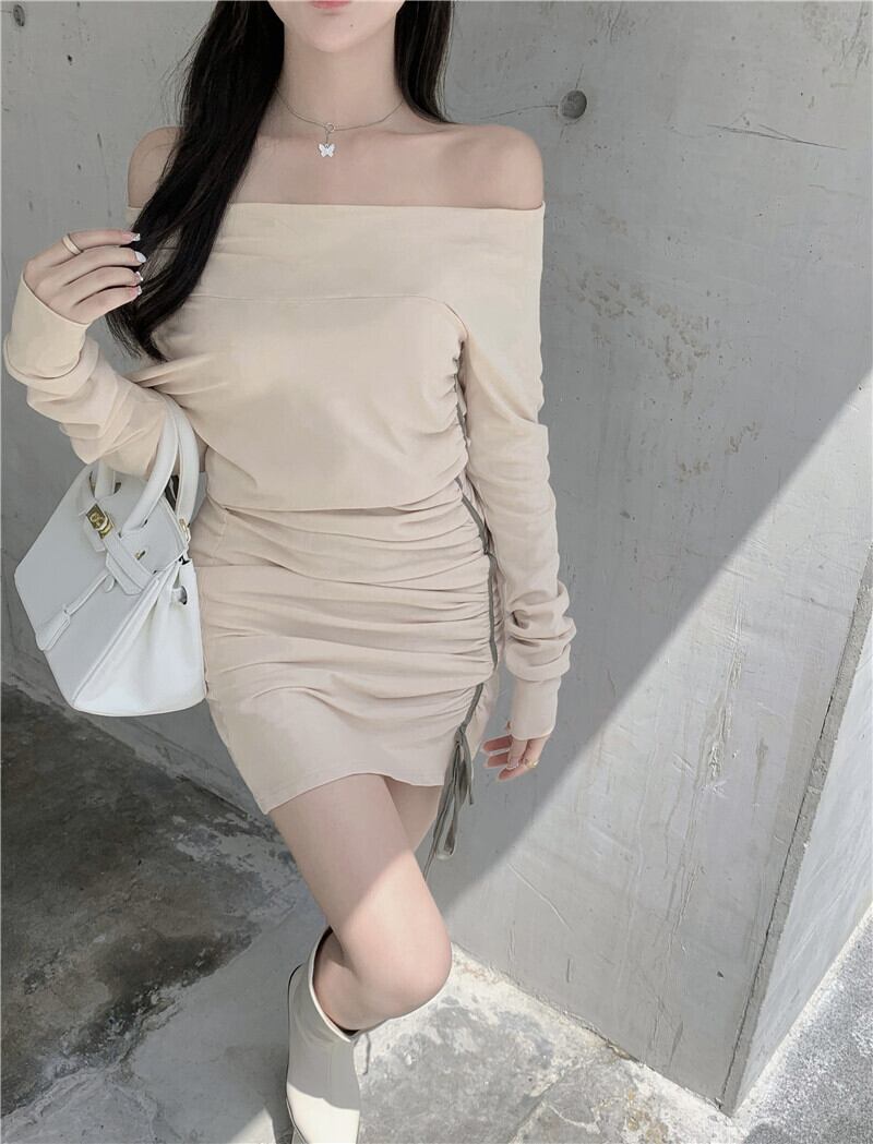 ストラップレスドレス オータムギャザースリムスカート ロング 秋物 ナナファッション16827712101