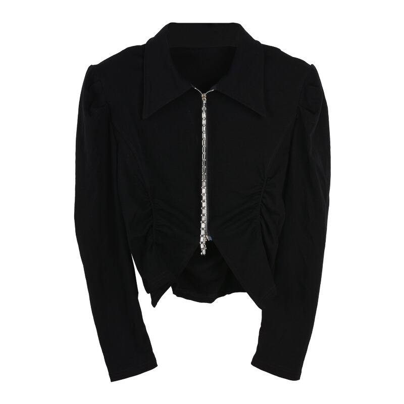 ショートトップス オータムウェストスリーブダブルジッパーTシャツ ロング 秋物 ナナファッション99715886933