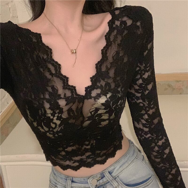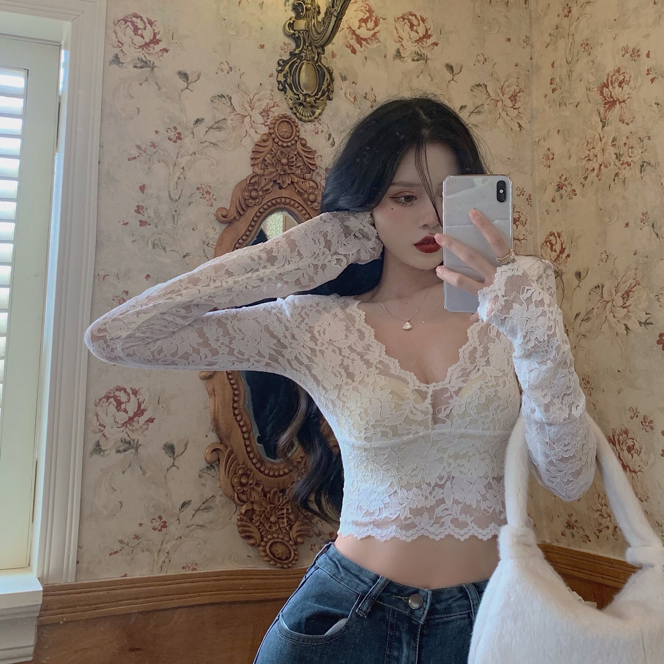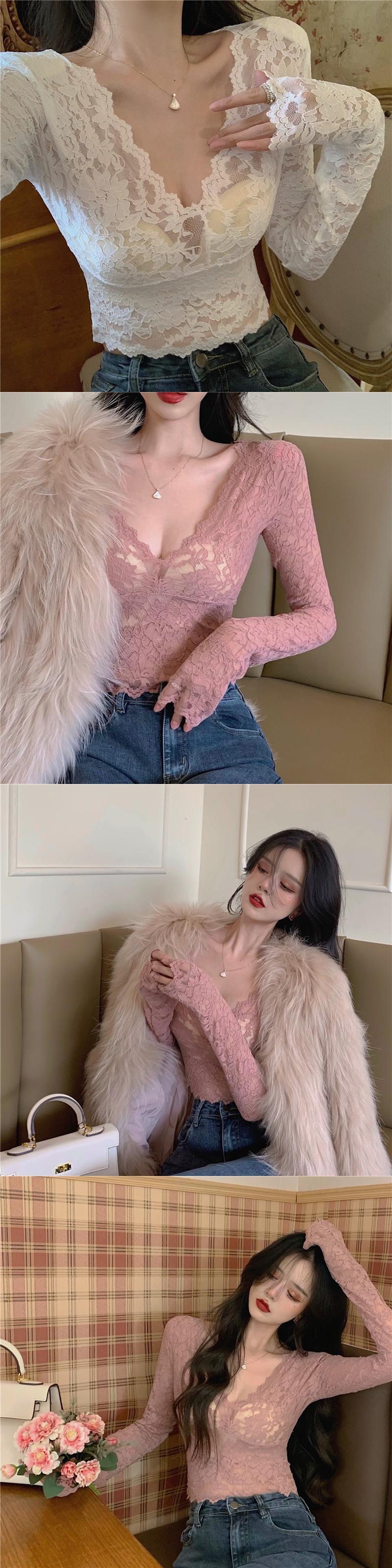 レーストップス ロング 大人ガーリー スウィート キュート カジュアル Vネック ナナファッション91630787464